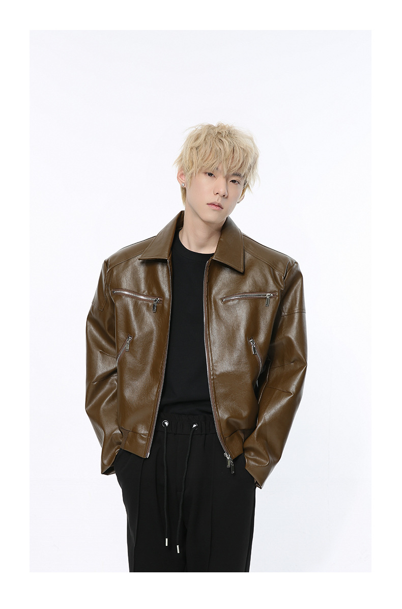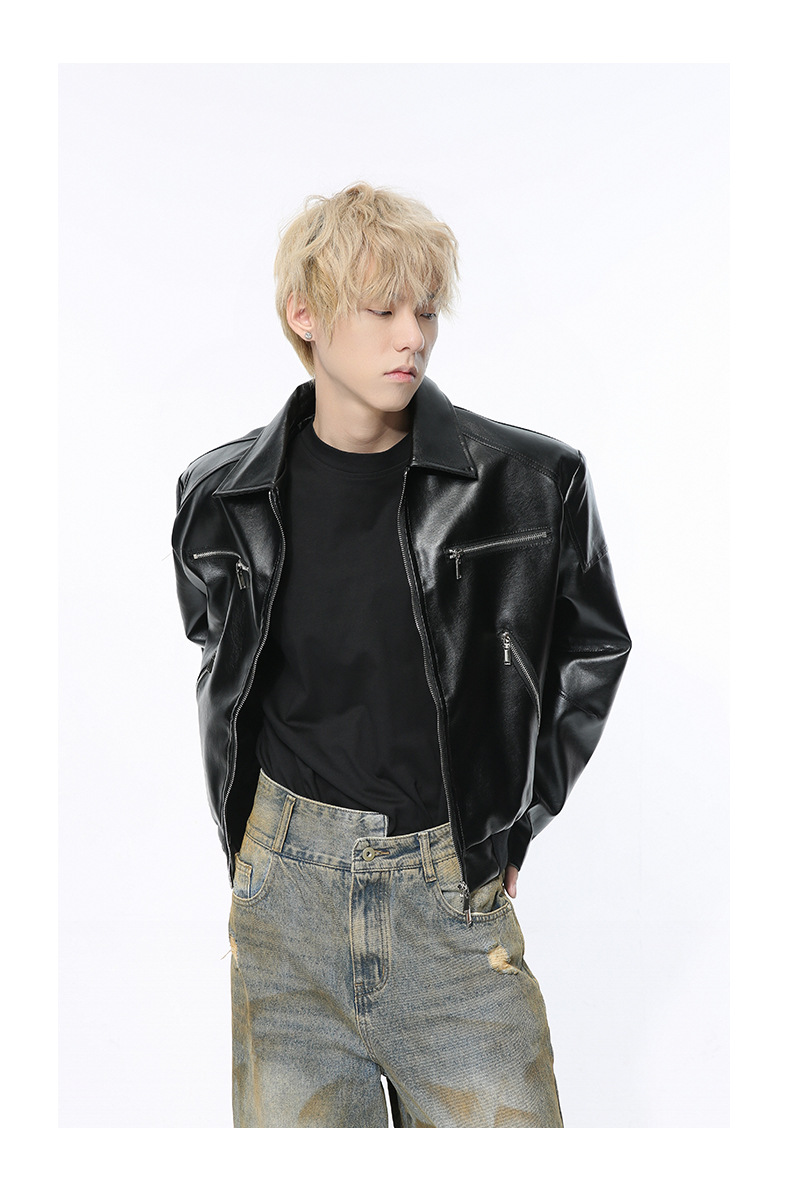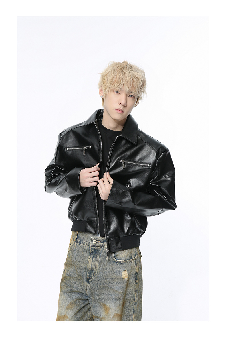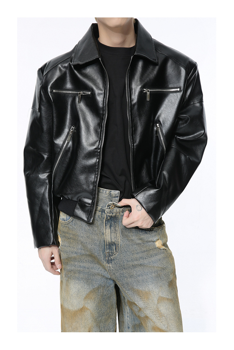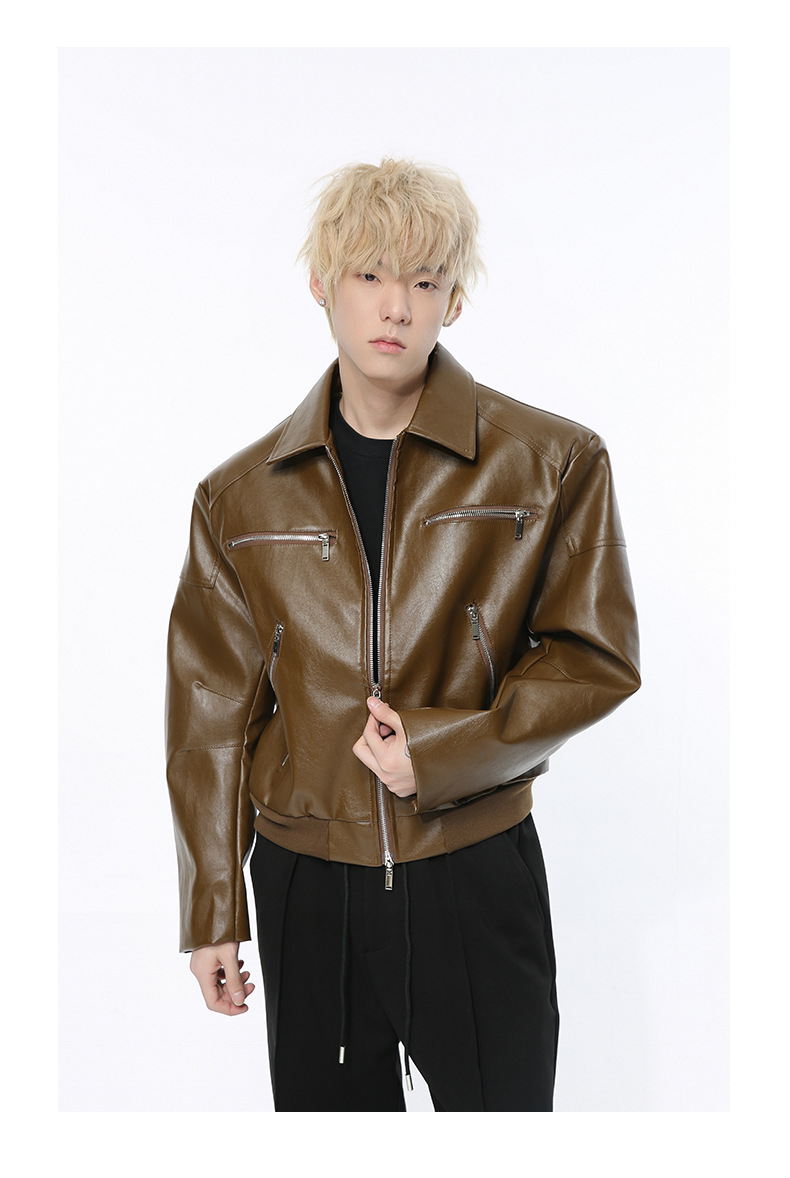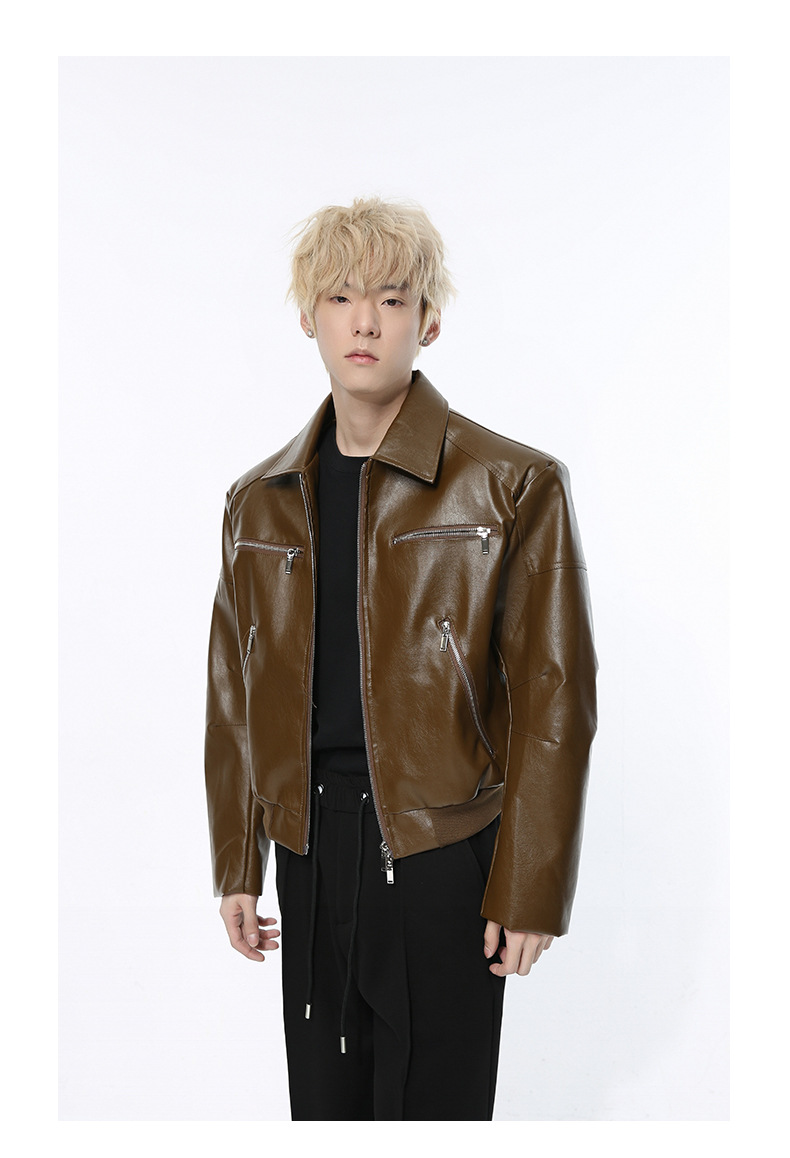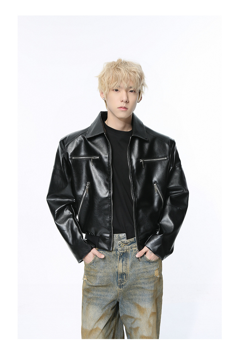 MTLCLOTHES 남성복 | 멋스러운 고급스러운 메탈 지퍼 디자인의 짧은 가죽 재킷, 트렌디하고 캐주얼한 스타일스토어 가기