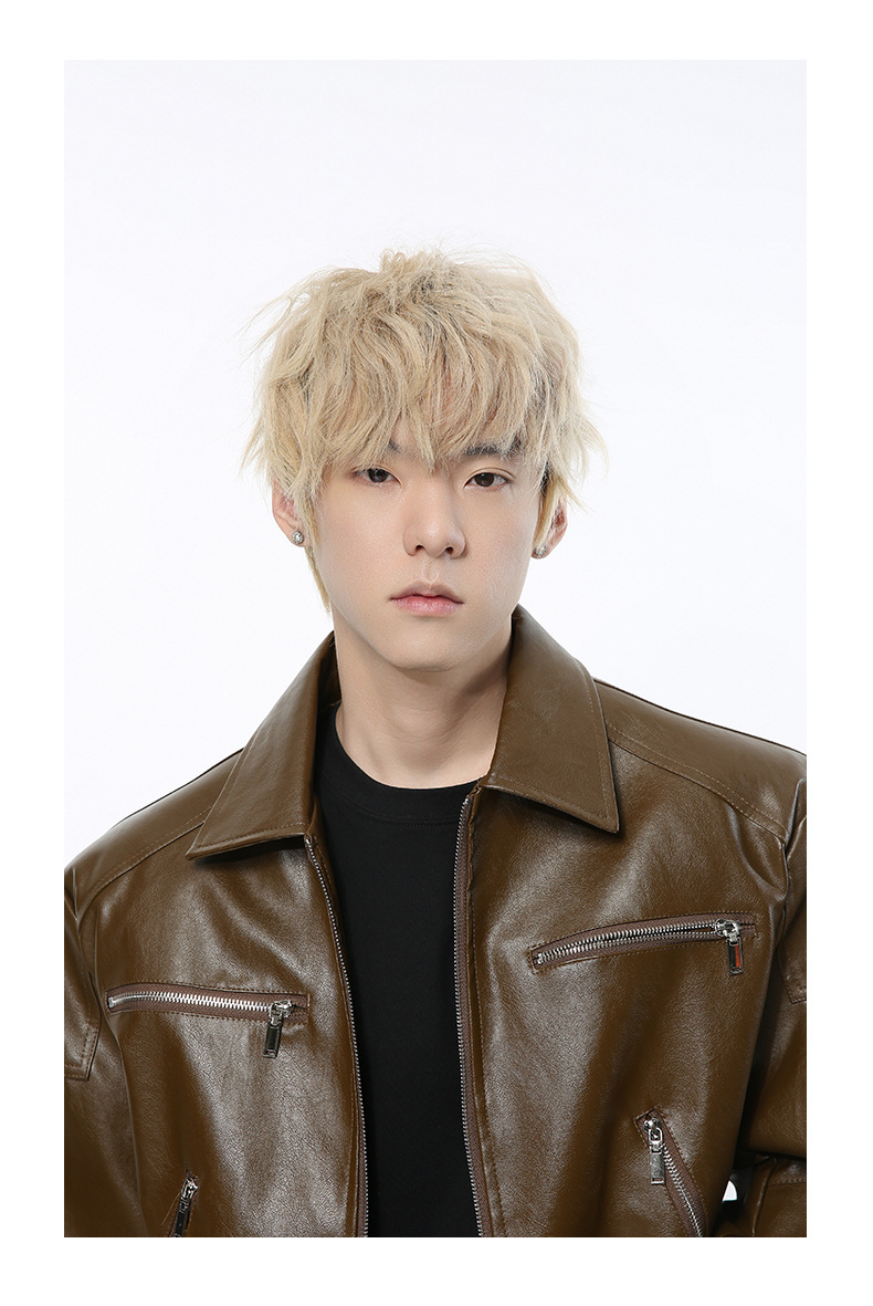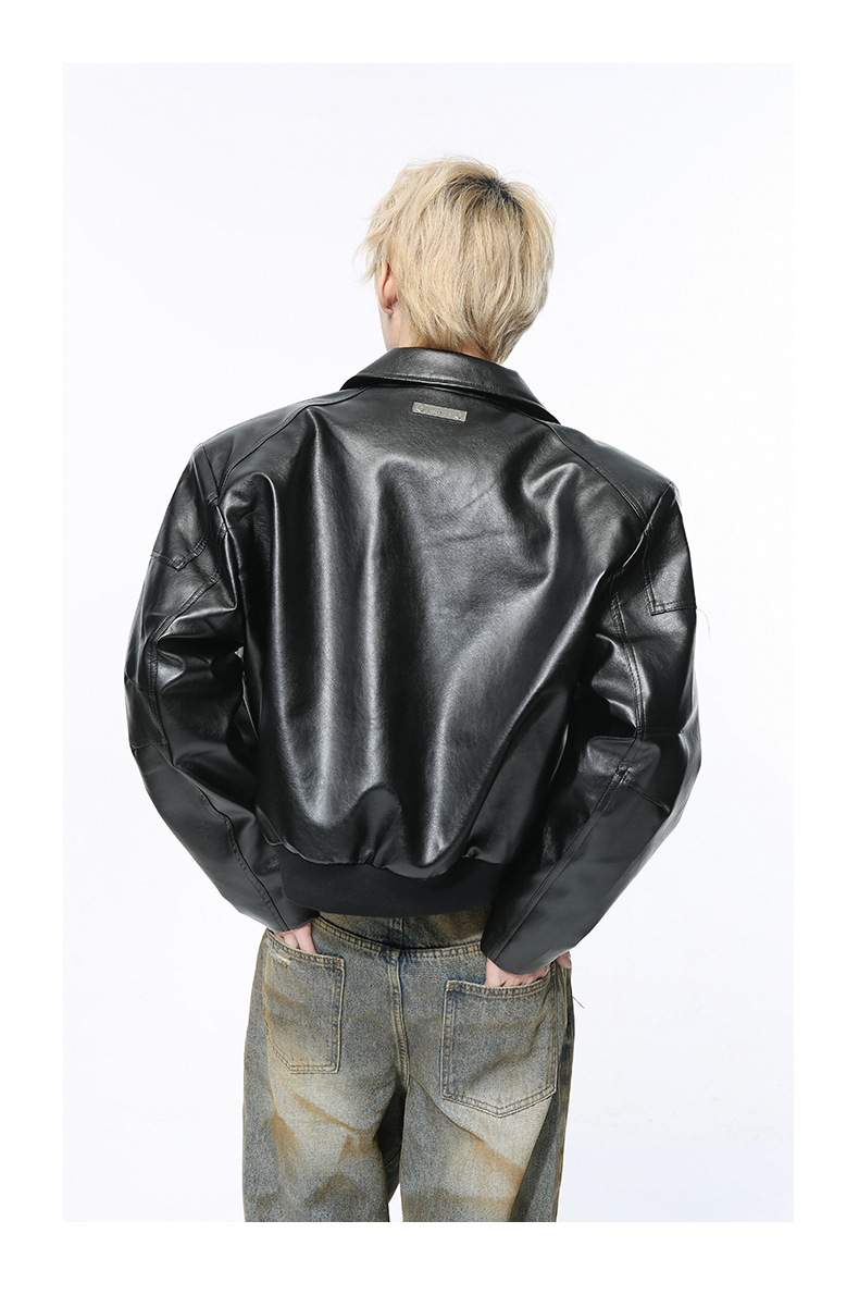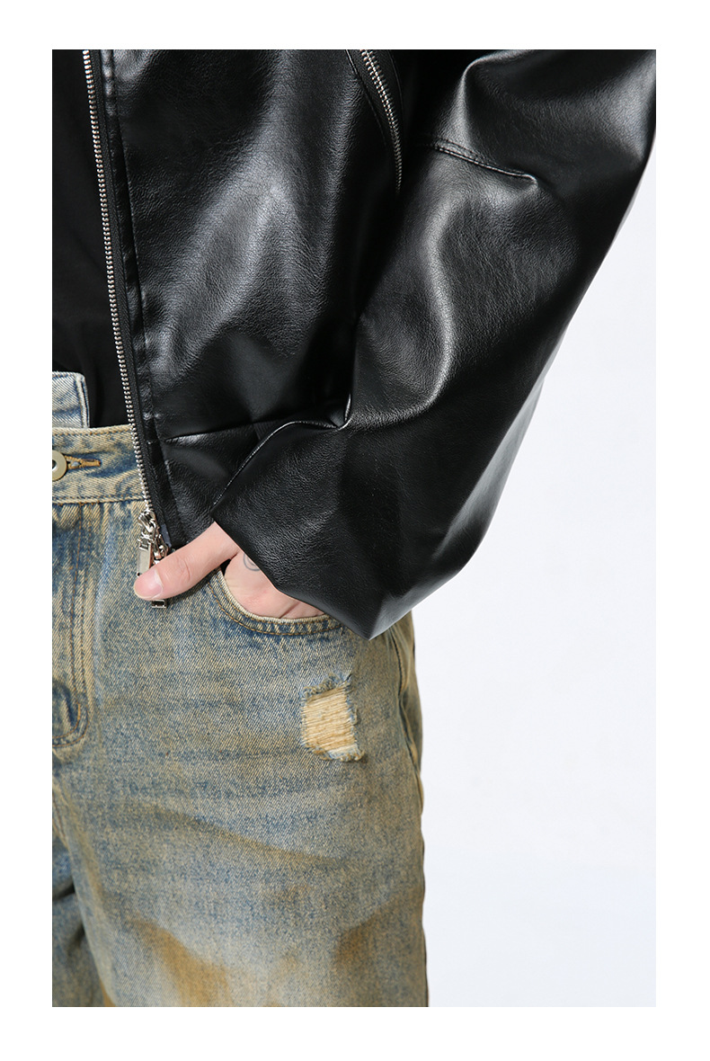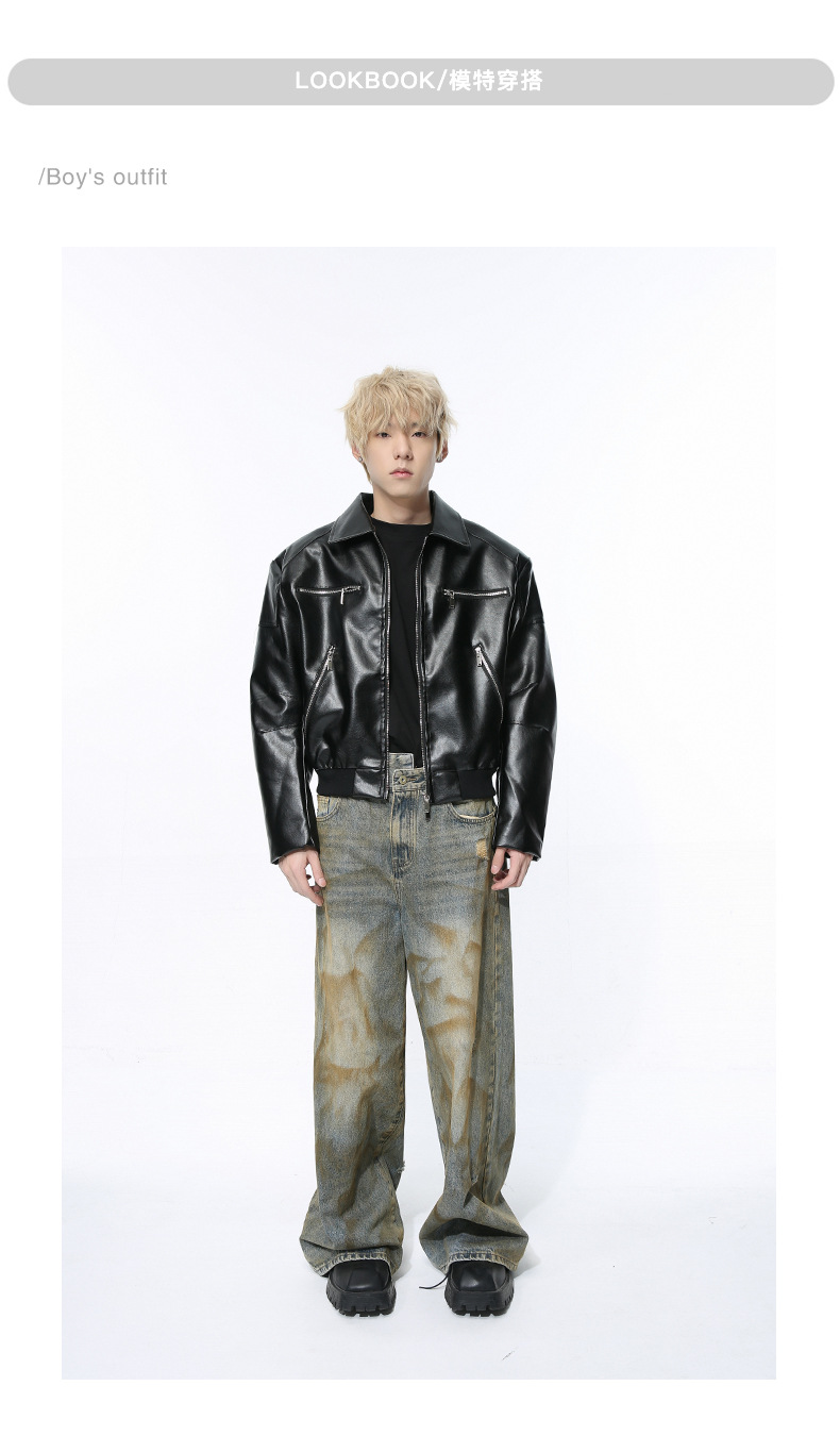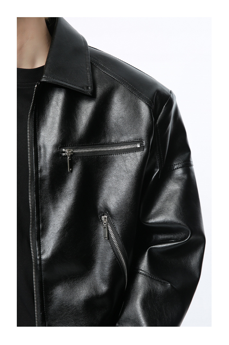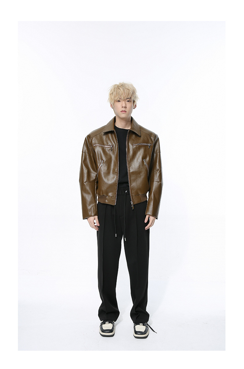 MTLCLOTHES 남성복 | 멋스러운 고급스러운 메탈 지퍼 디자인의 짧은 가죽 재킷, 트렌디하고 캐주얼한 스타일스토어 가기