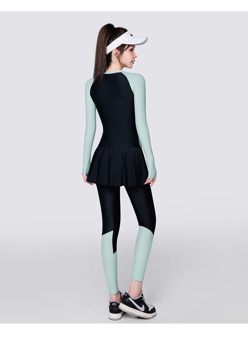 수영복 여성 2025 년 새 온천 3 피스 스플릿 수영복 여성용 긴팔 육체 커버 슬리밍 전문 수영복