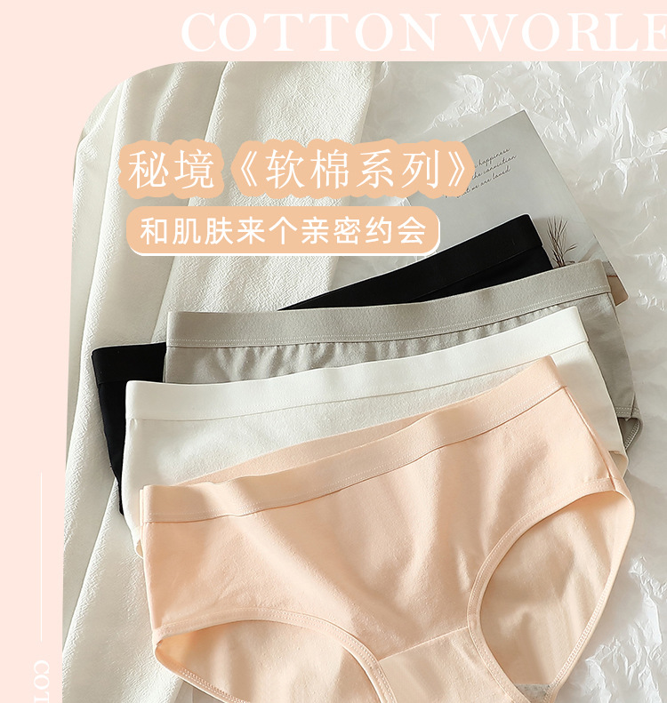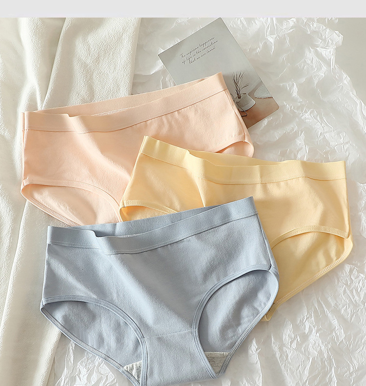 여성용 여름 얇은 순면 통기성 면 가랑이 중간 허리 복부 조절 일본식 소녀 단색 여성 삼각 팬티스토어 가기
