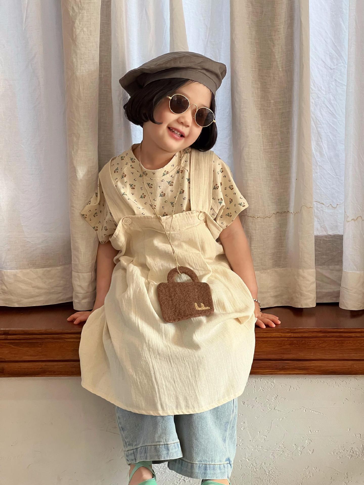 뾰족한 달걀 한국식 아동복 2024 봄과 여름 새 소녀 치마 단색 서스펜더 스커트 원피스 쌓인스토어 가기
