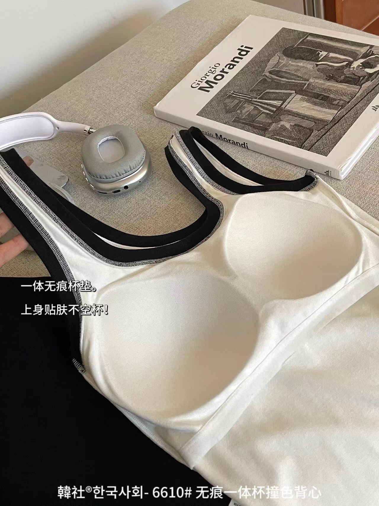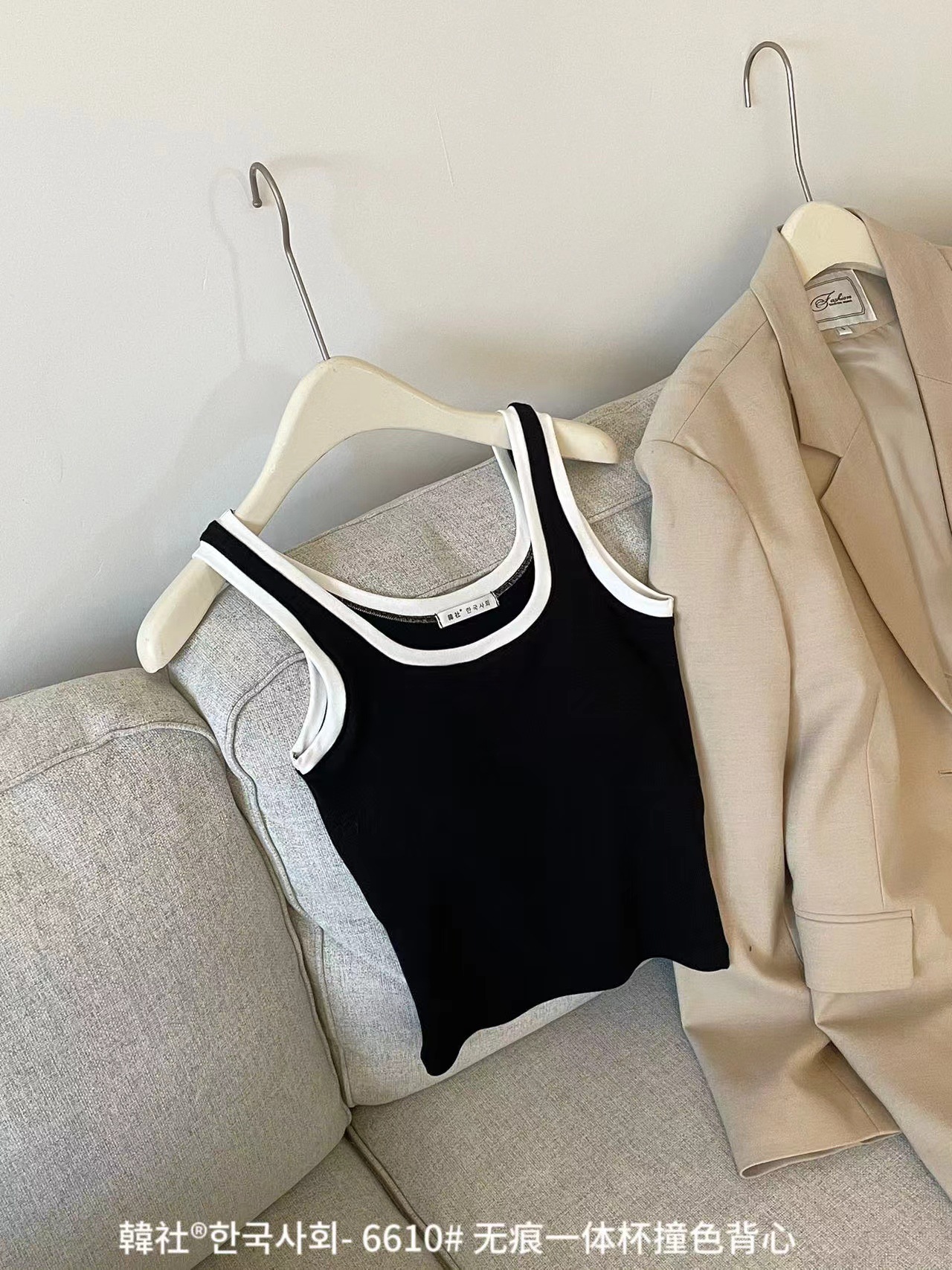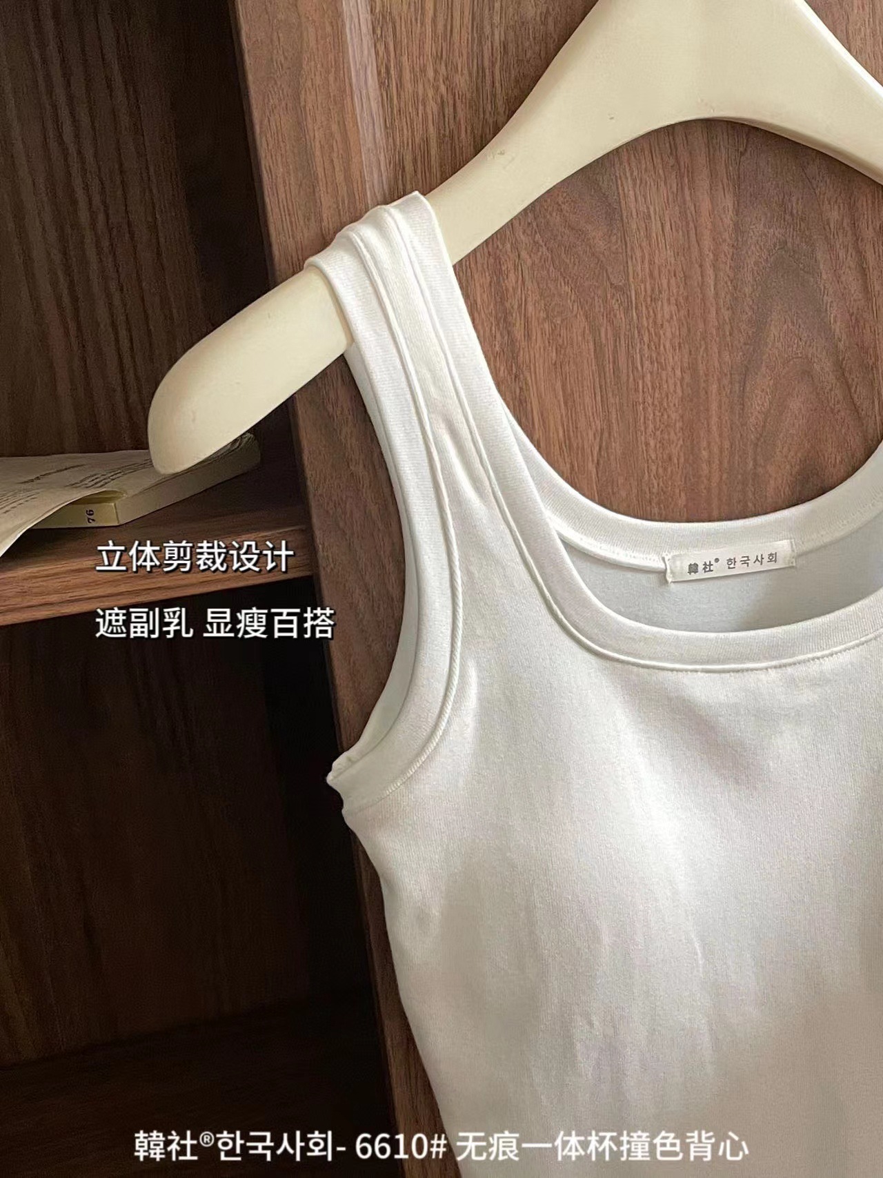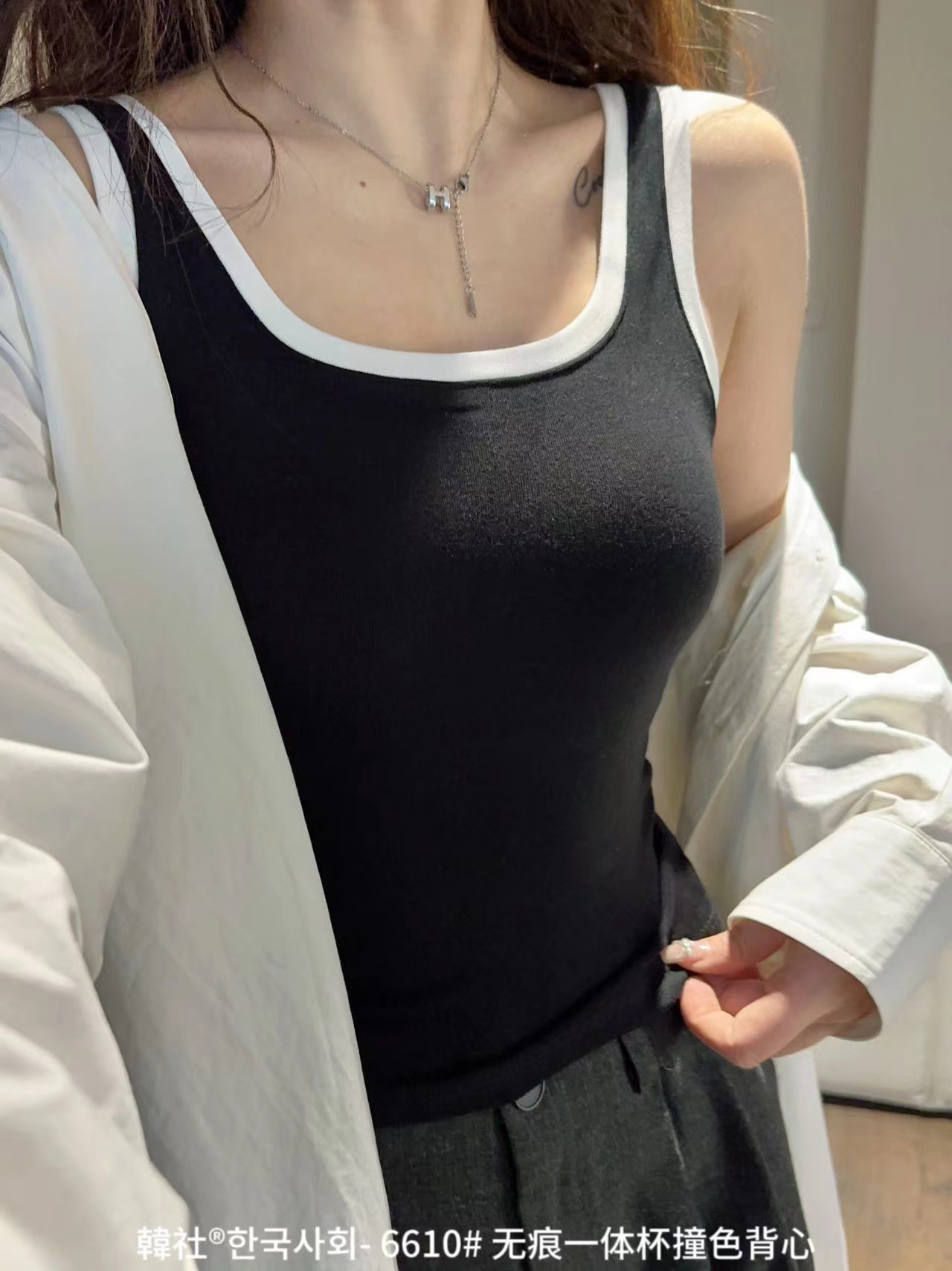 Hanshe 6610 # 원활한 원피스 컵 대비 컬러 U-칼라 조끼 여성을위한 안티 노출 편안한베이스 스티칭 슬링 뷰티 백스토어 가기