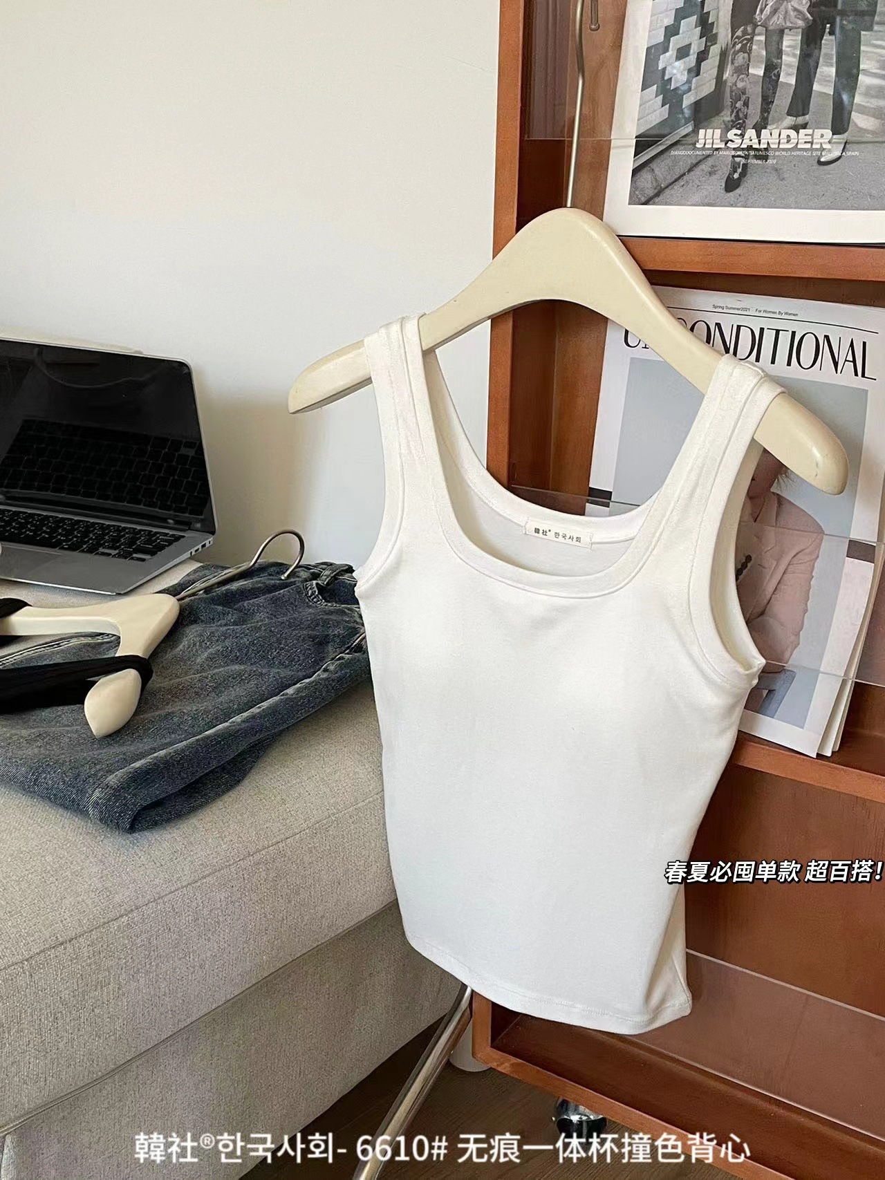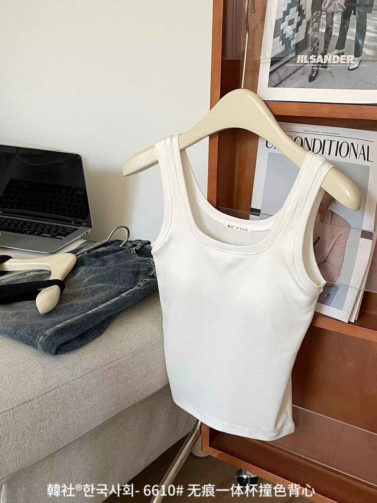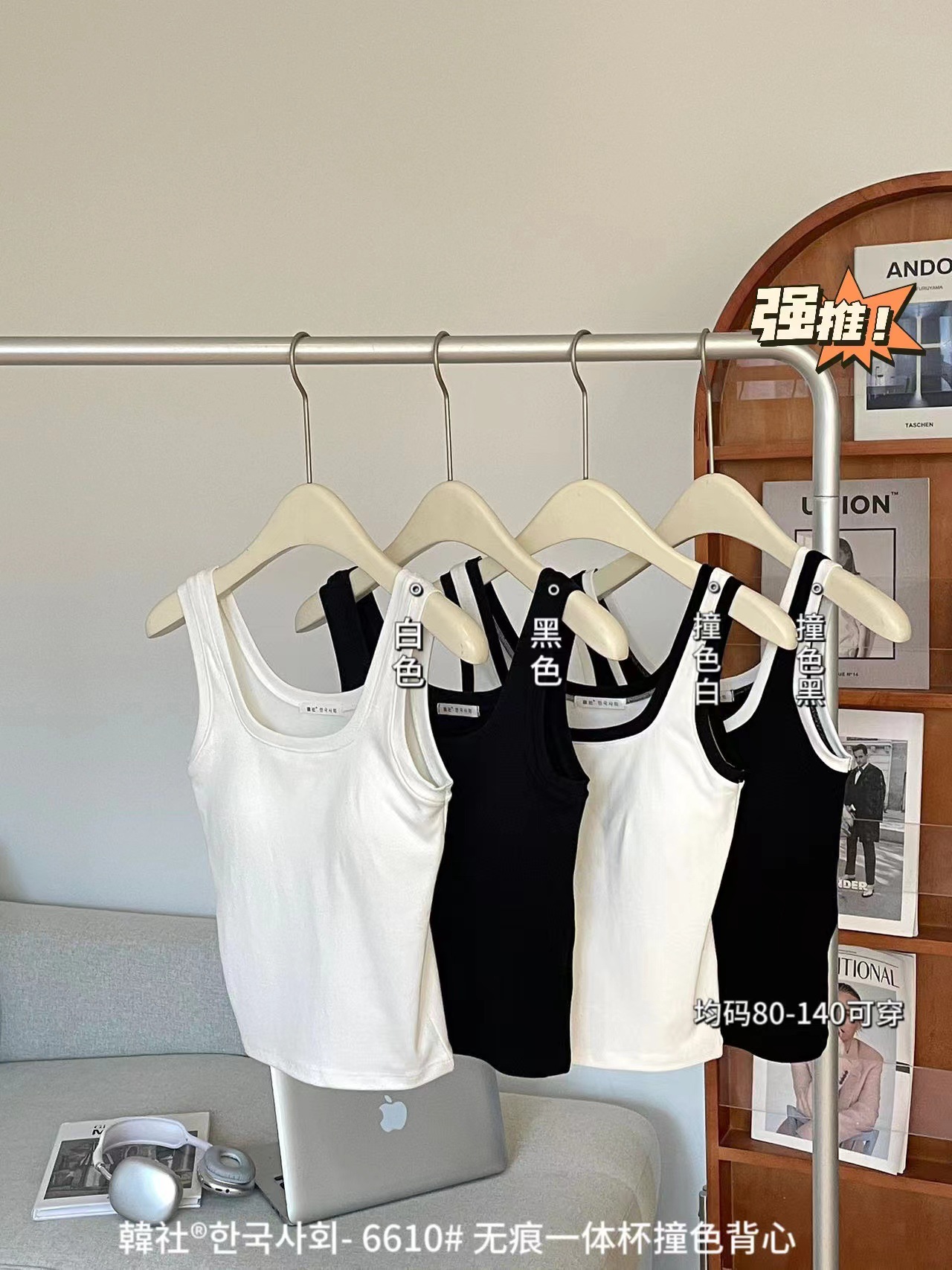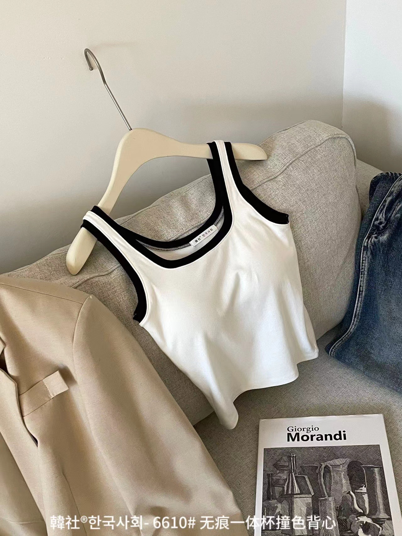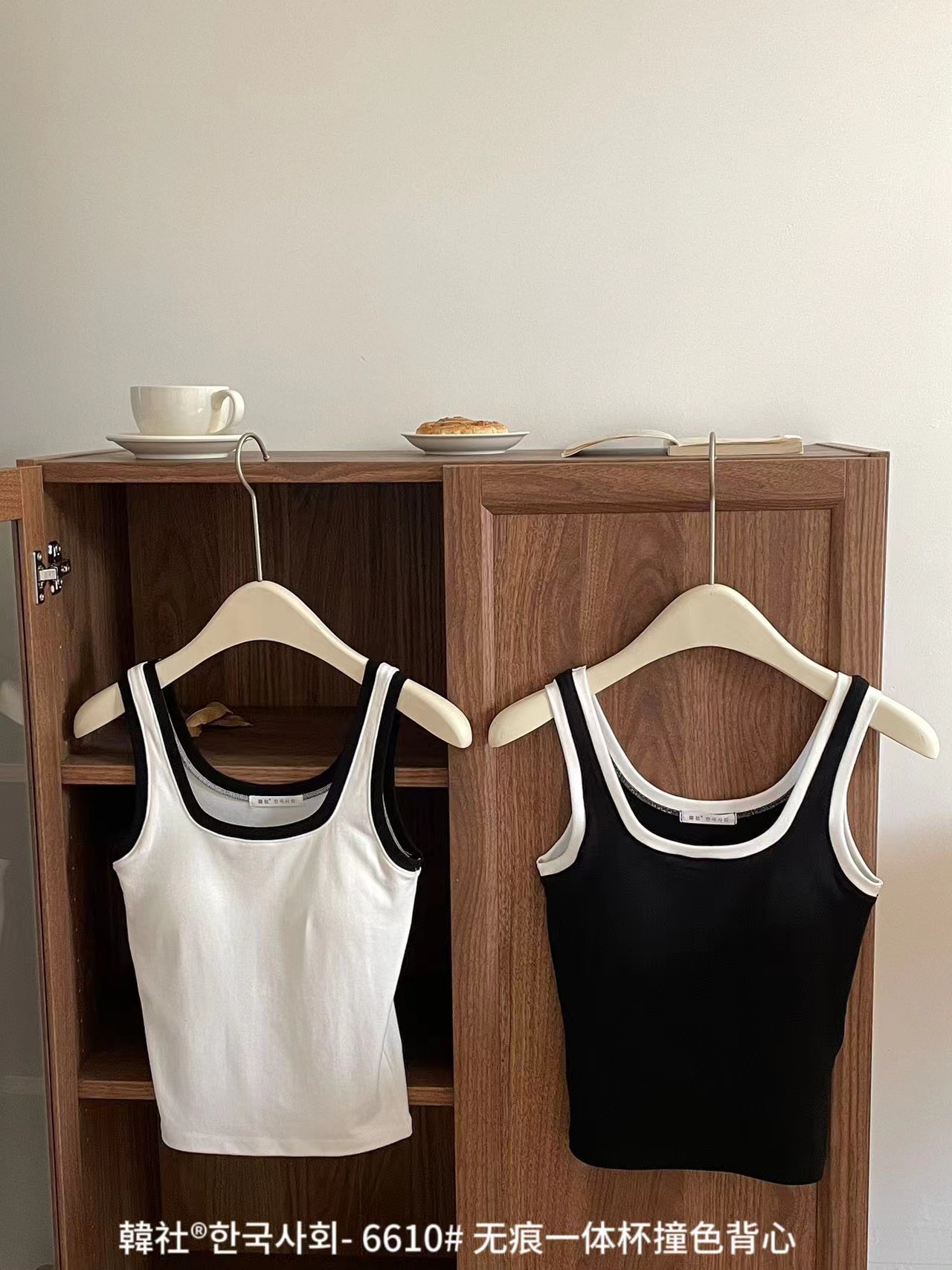 Hanshe 6610 # 원활한 원피스 컵 대비 컬러 U-칼라 조끼 여성을위한 안티 노출 편안한베이스 스티칭 슬링 뷰티 백스토어 가기