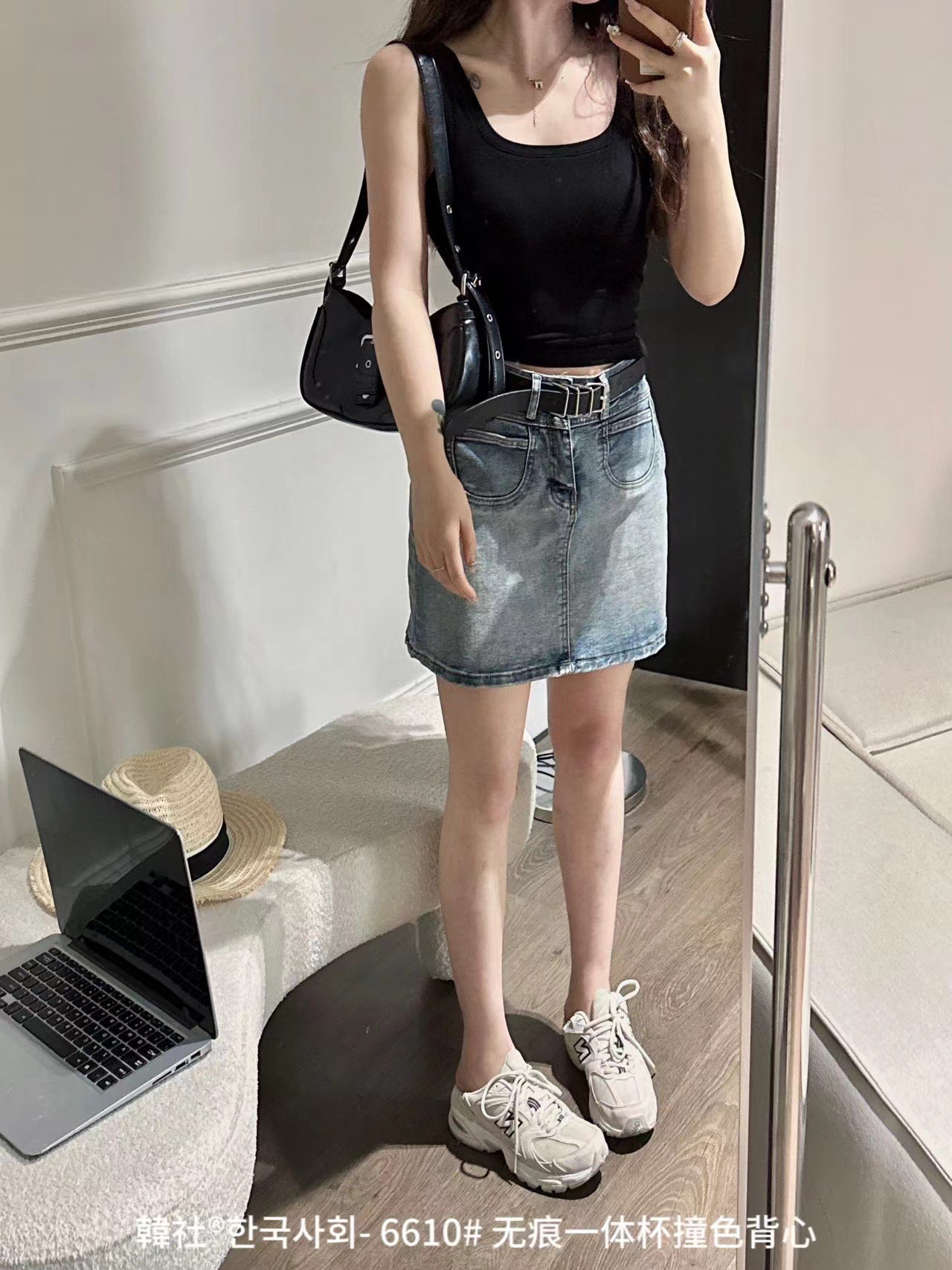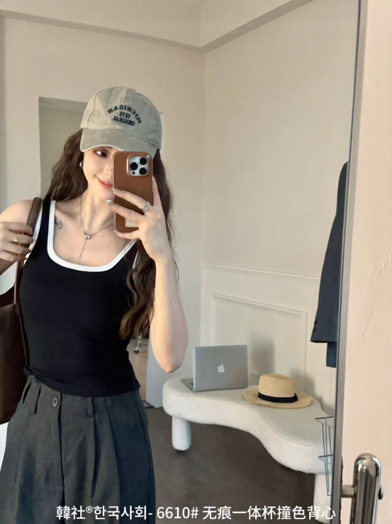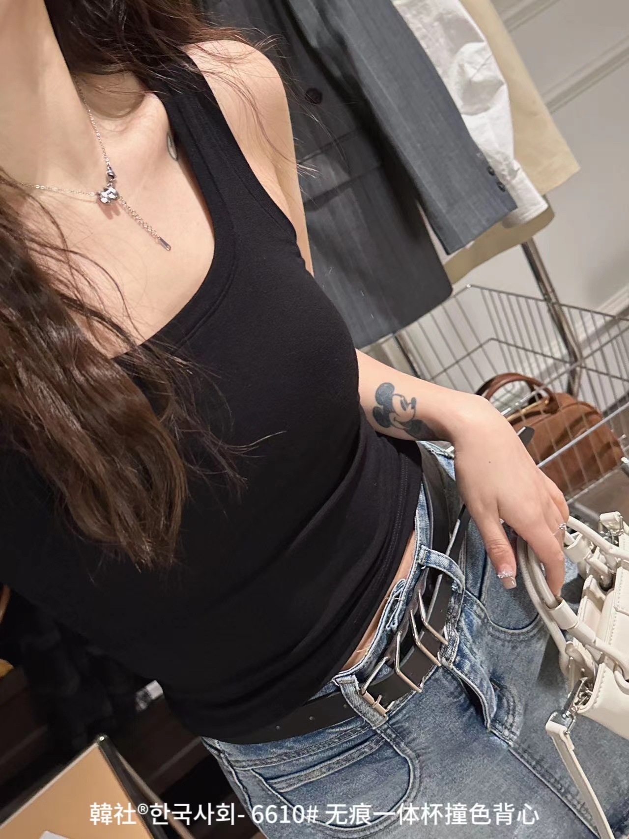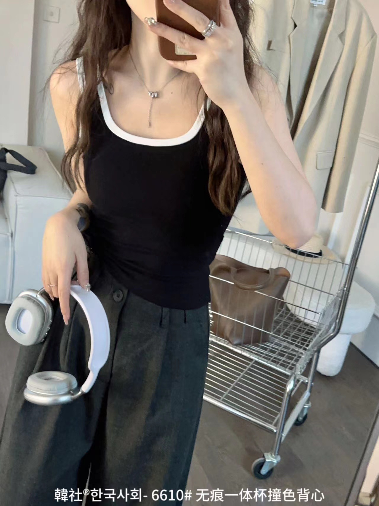 Hanshe 6610 # 원활한 원피스 컵 대비 컬러 U-칼라 조끼 여성을위한 안티 노출 편안한베이스 스티칭 슬링 뷰티 백스토어 가기