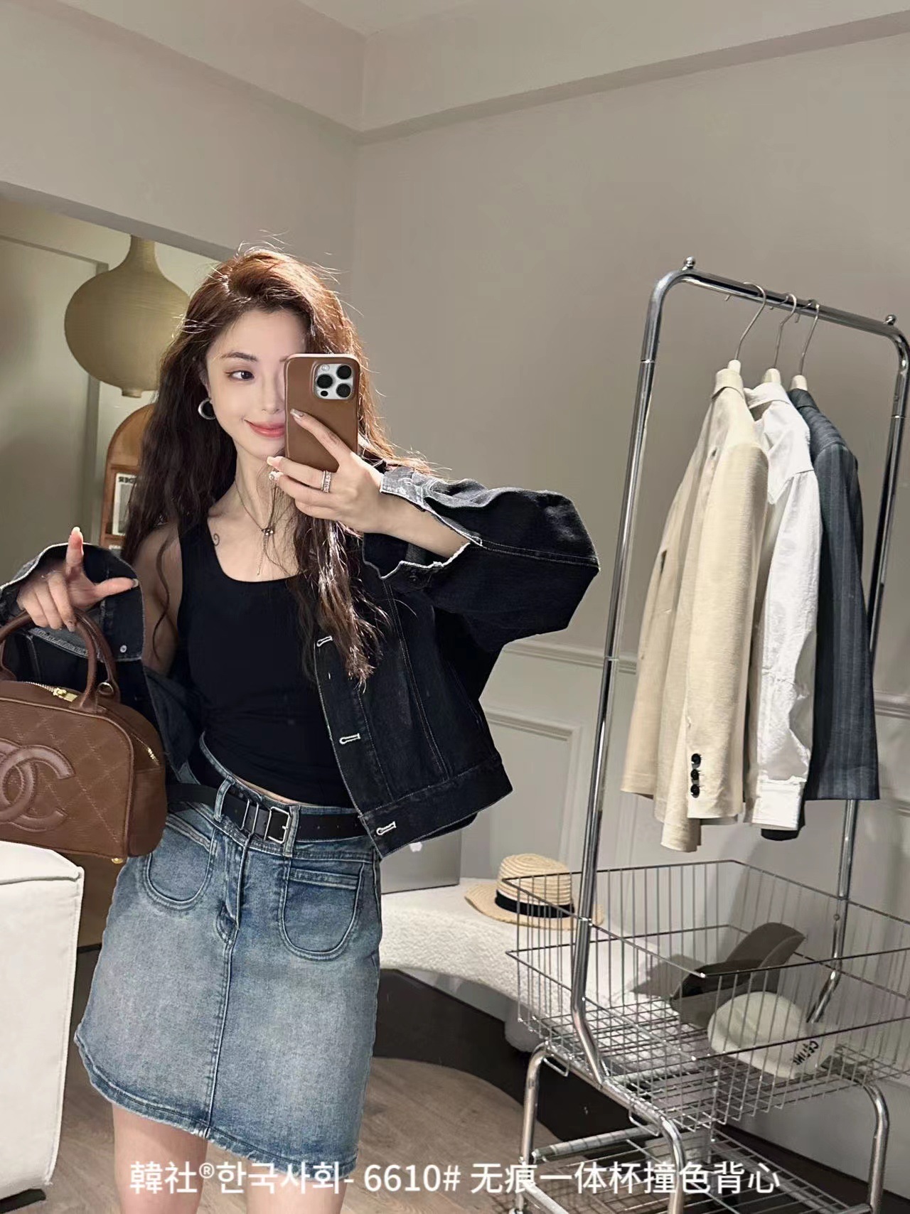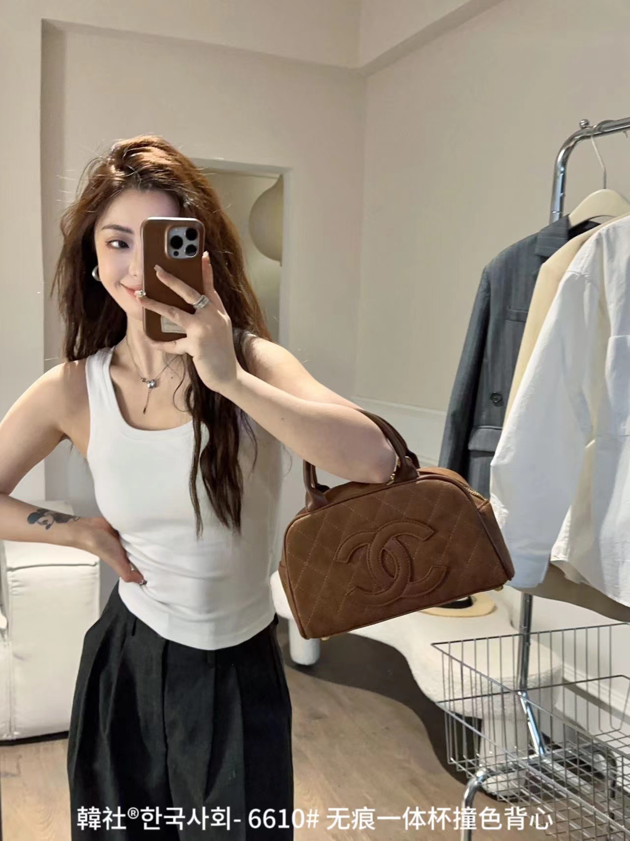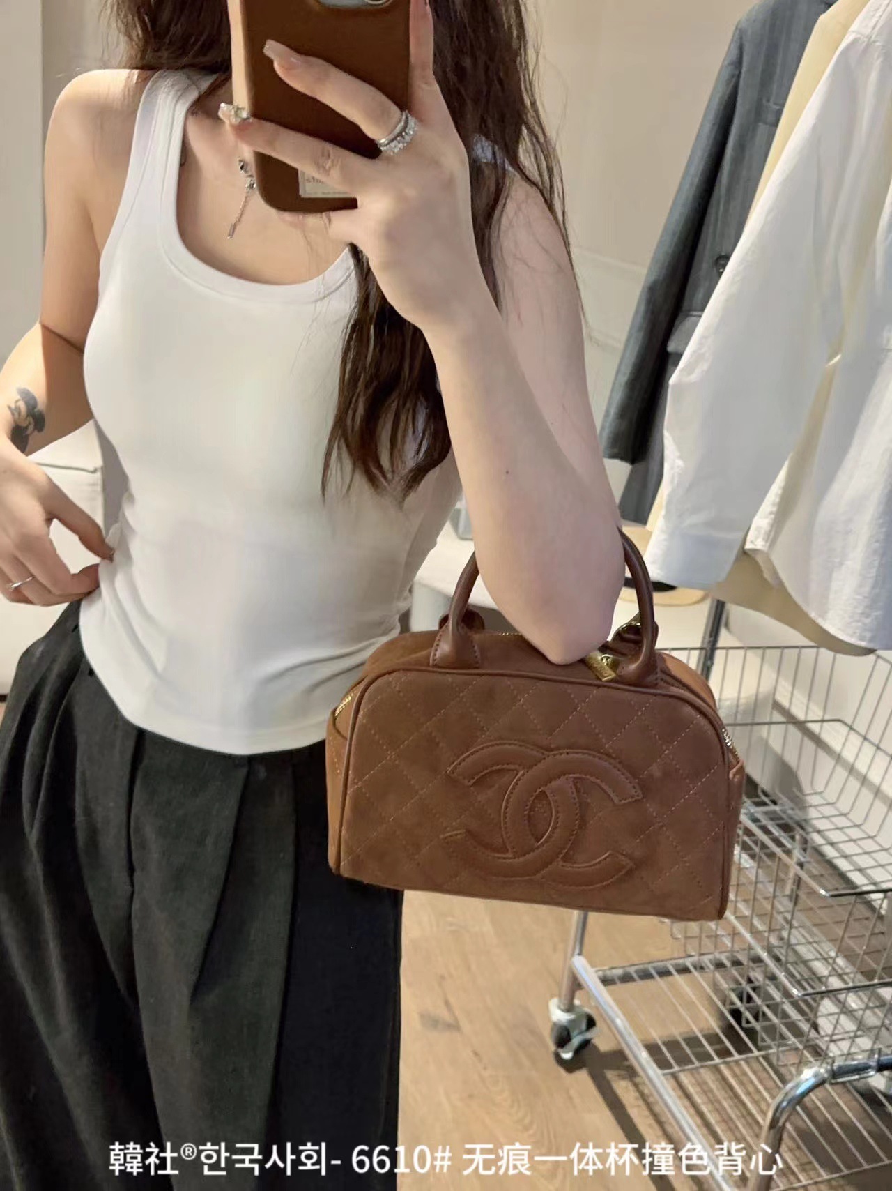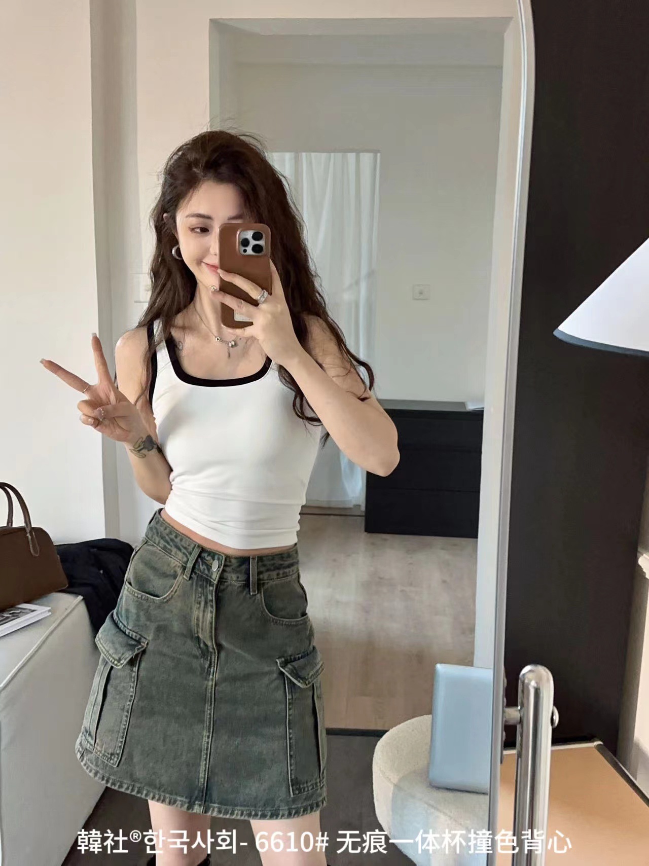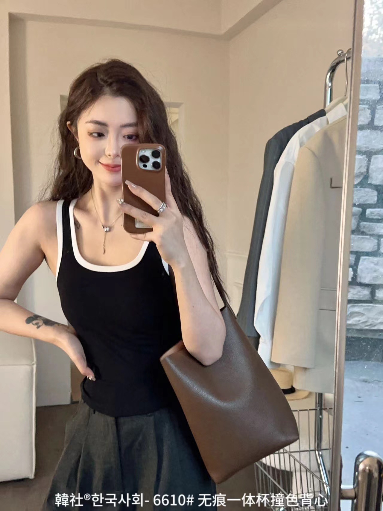 Hanshe 6610 # 원활한 원피스 컵 대비 컬러 U-칼라 조끼 여성을위한 안티 노출 편안한베이스 스티칭 슬링 뷰티 백스토어 가기