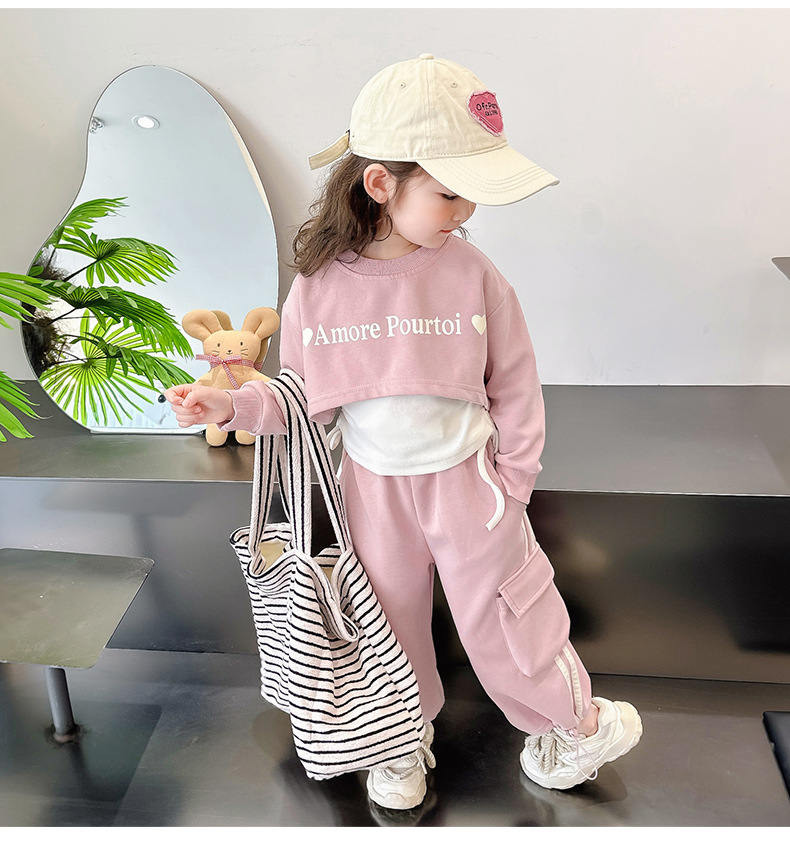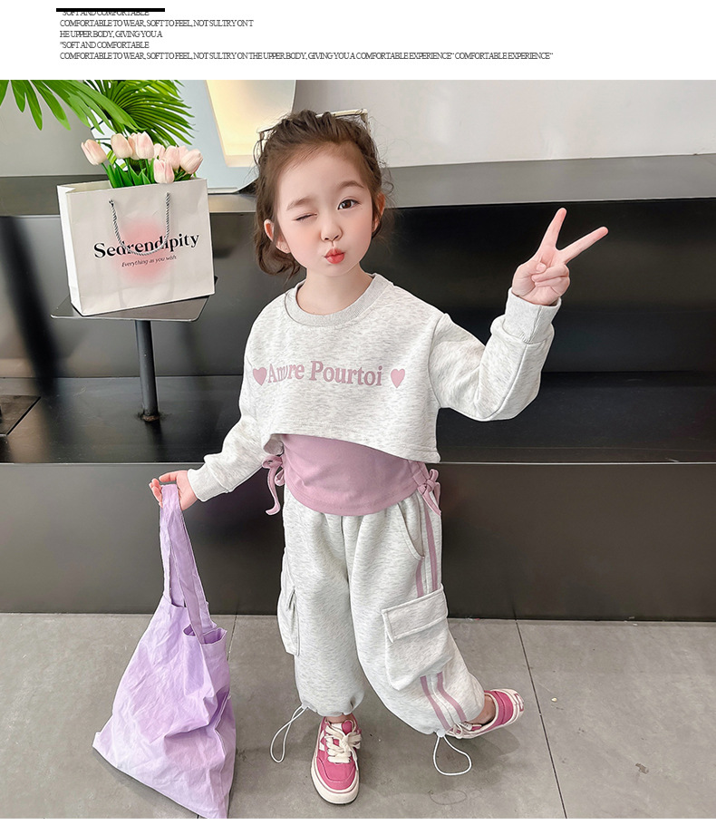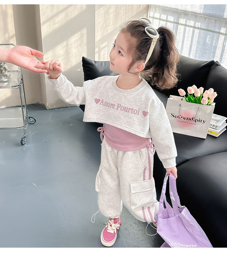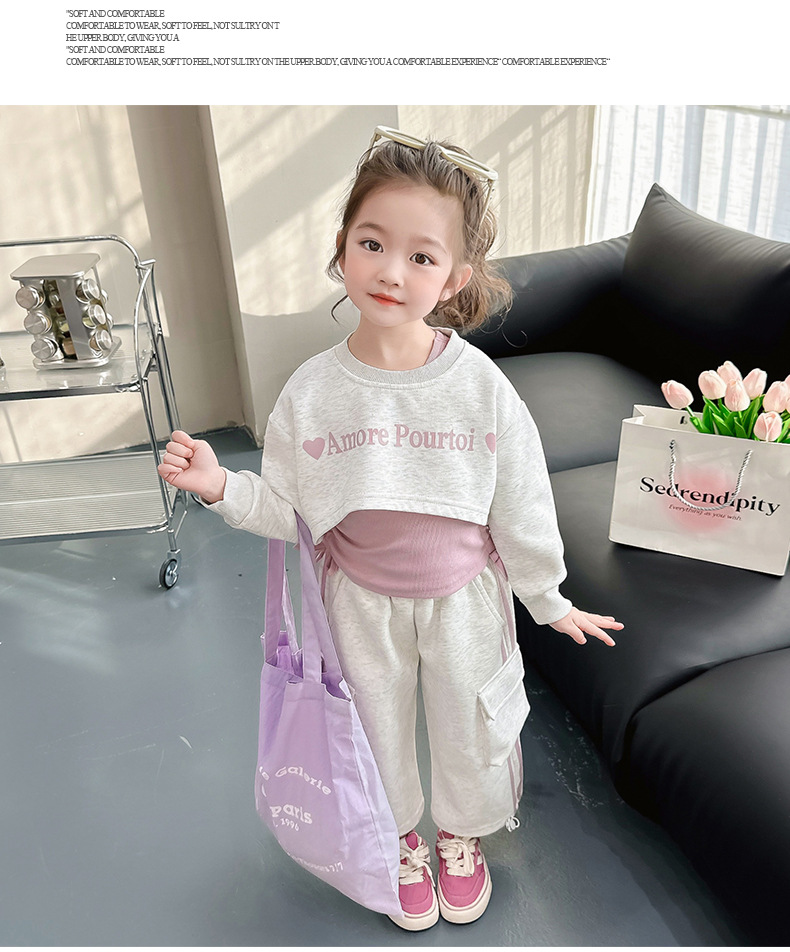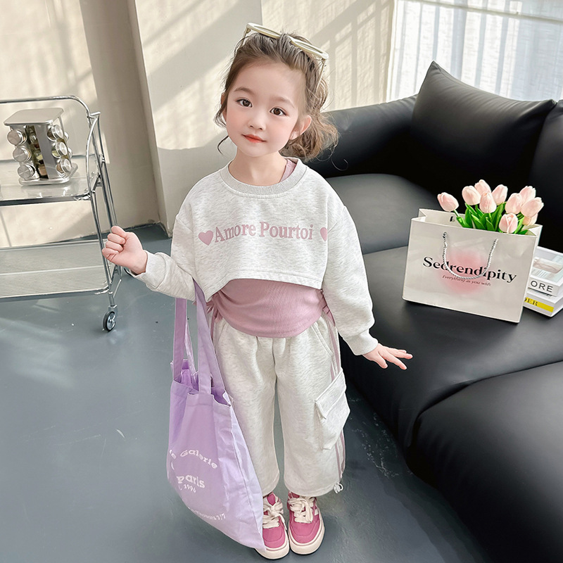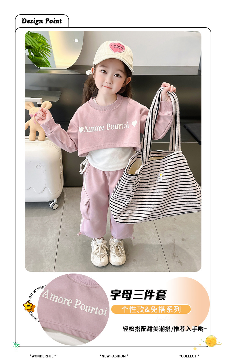 소녀의 봄 세트 2024 새로운 어린이 봄 옷 소녀 서양식 옷 아기 소녀의 봄과 가을 유행 3 피스 세트