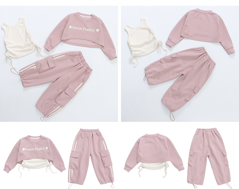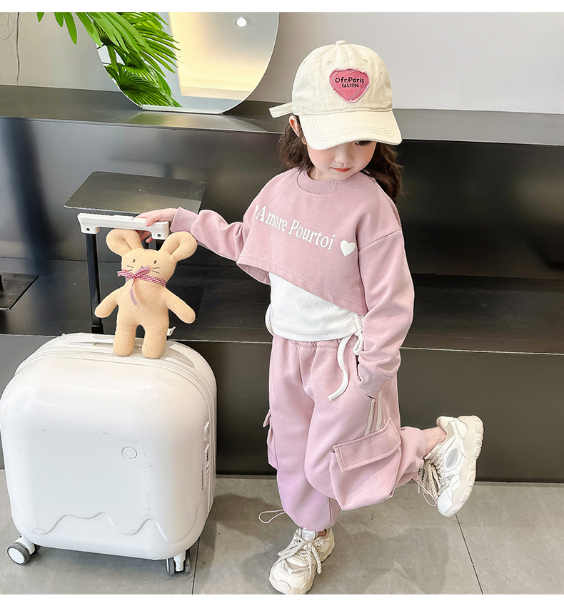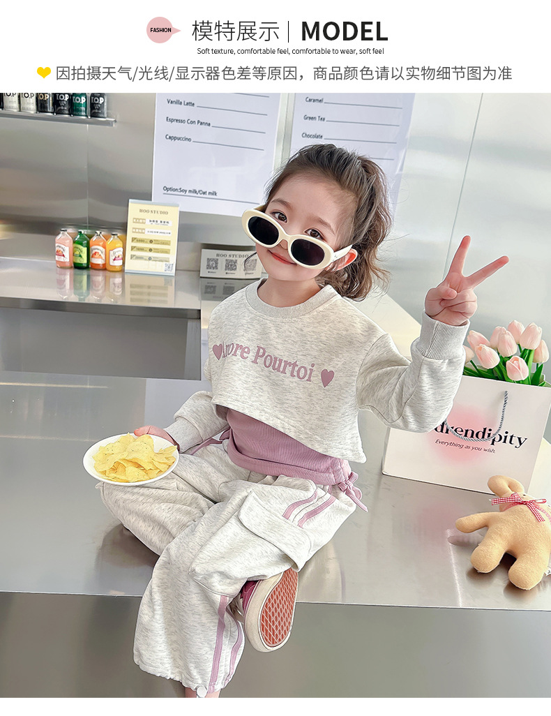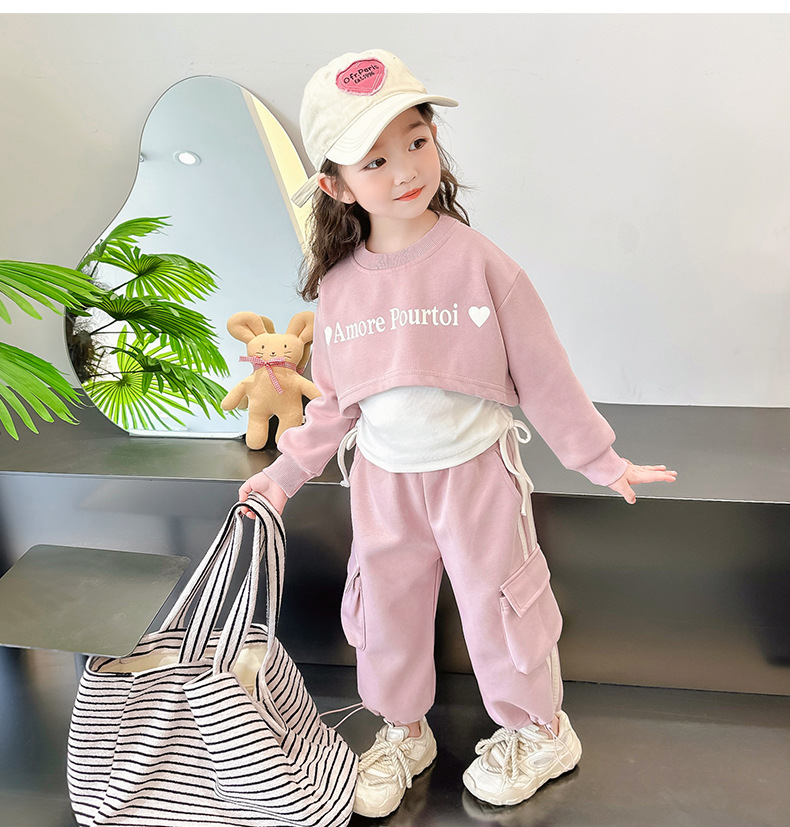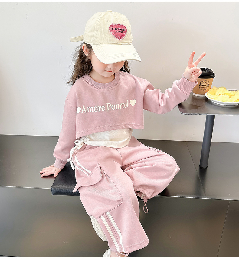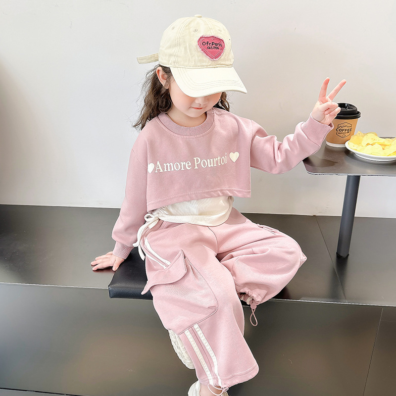소녀의 봄 세트 2024 새로운 어린이 봄 옷 소녀 서양식 옷 아기 소녀의 봄과 가을 유행 3 피스 세트