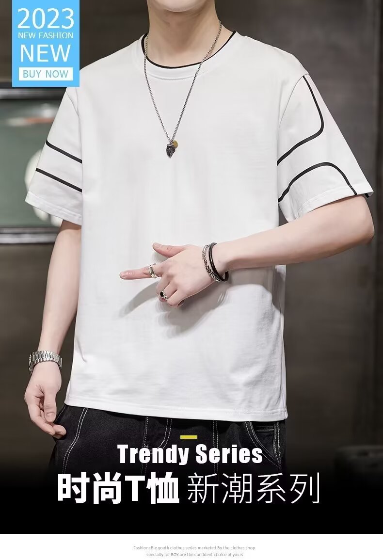 홍콩 스타일 티셔츠 남성 2024 여름 인기 패션 올 매치 느슨한 캐주얼 패션 브랜드 가짜 투피스 바닥 셔츠 탑 패션