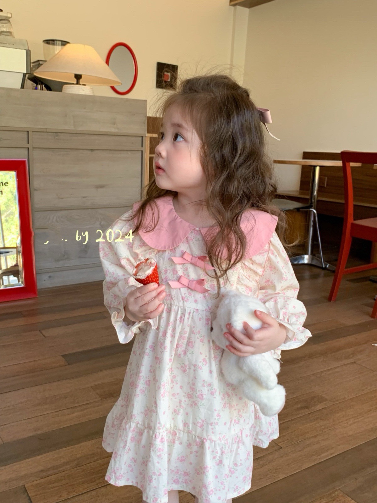 핑크 하우스 한국 아동복 봄 새로운 한국 스타일 소녀 어린이 꽃 인쇄 면 원피스 서양식 가을