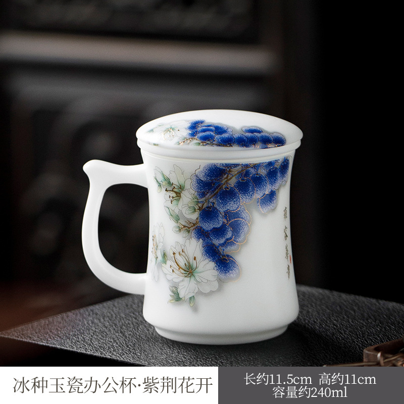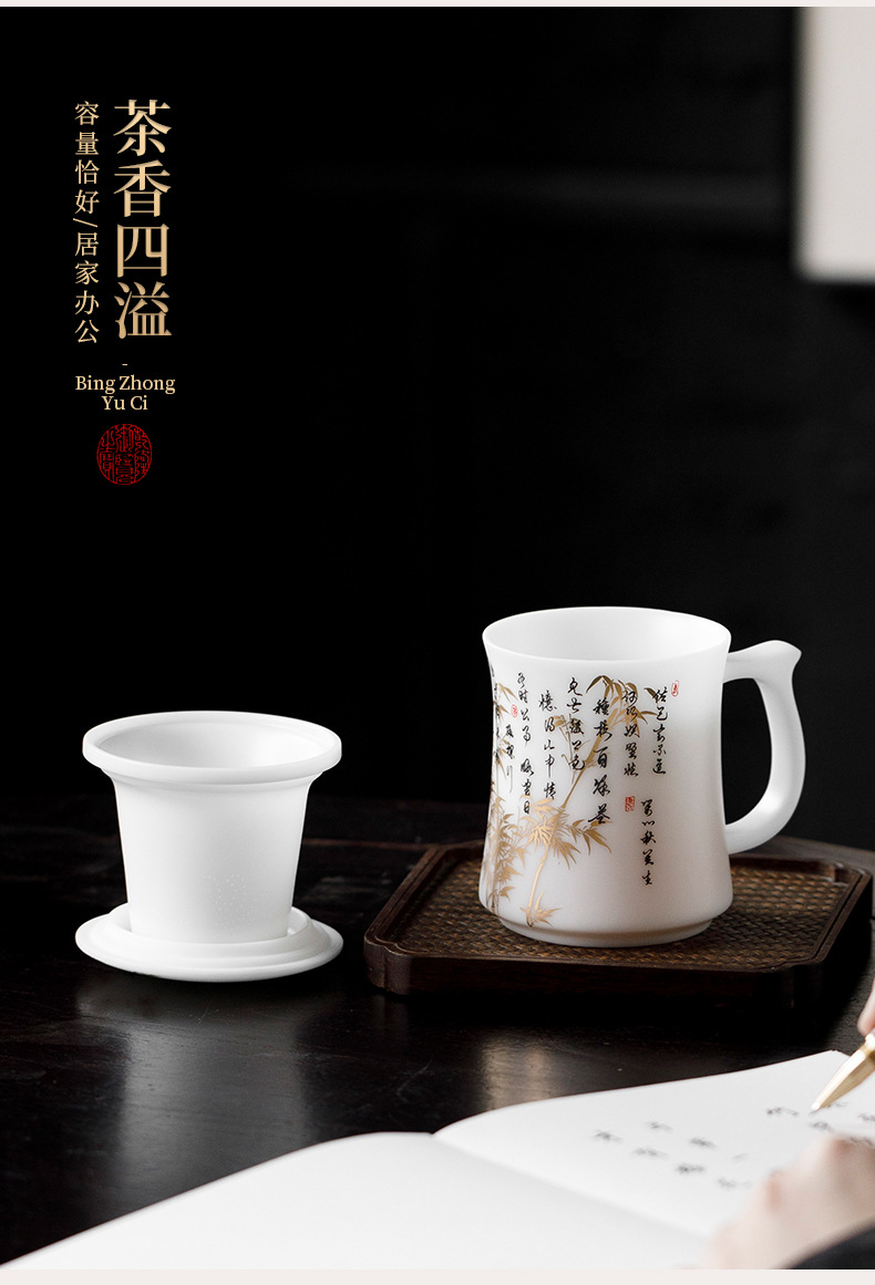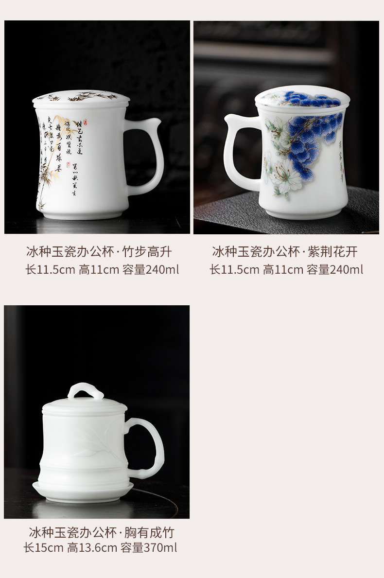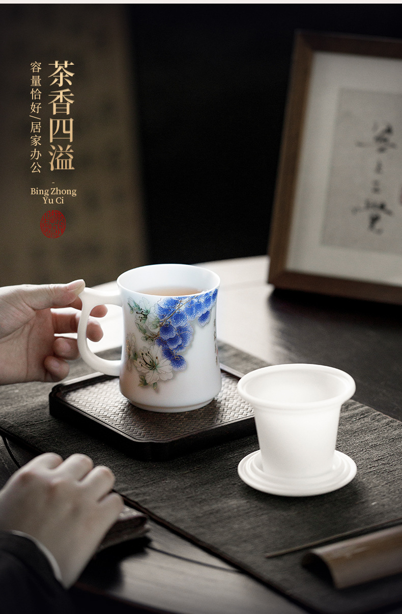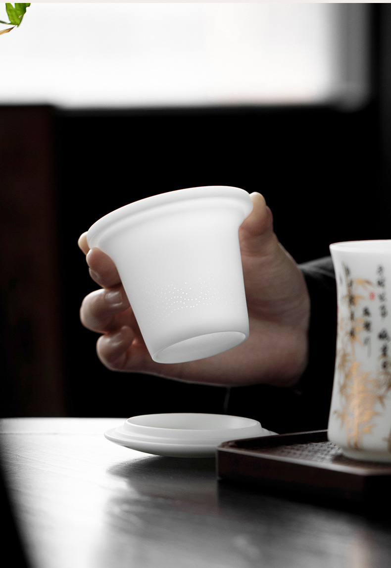 얼음 옥 도자기 사무실 컵 Dehua 흰색 도자기 차 분리 거품 컵 뚜껑 필터 비즈니스 선물 로고스토어 가기