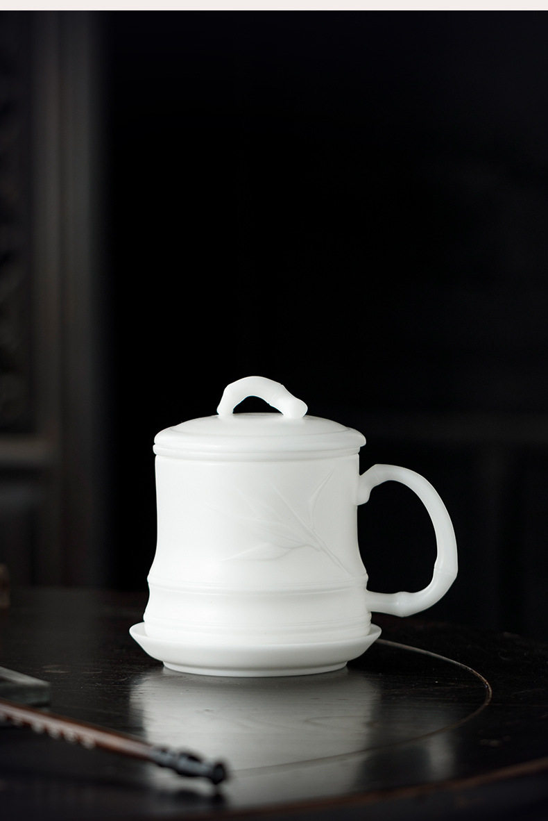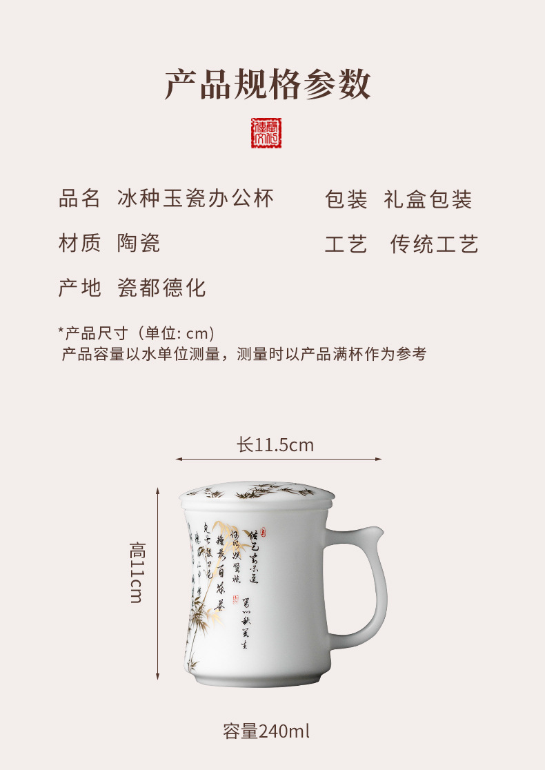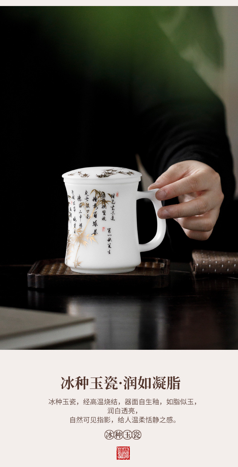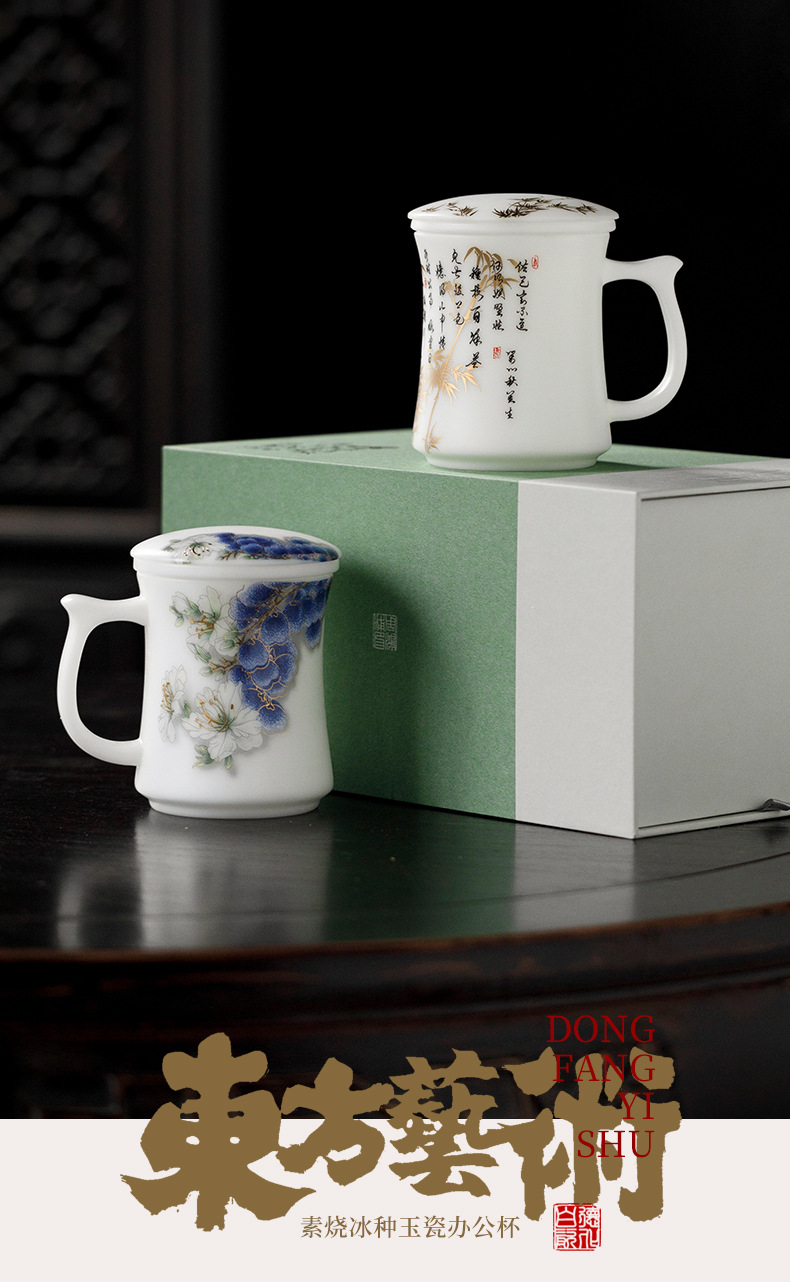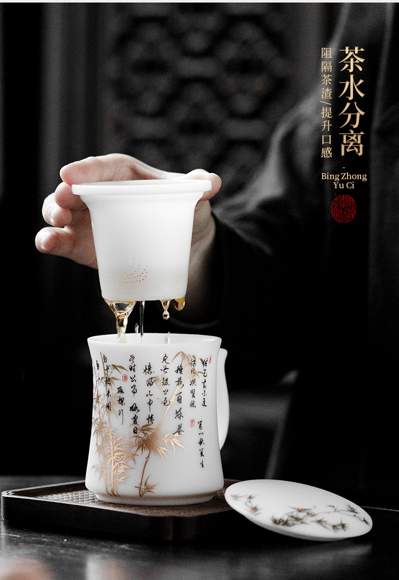 얼음 옥 도자기 사무실 컵 Dehua 흰색 도자기 차 분리 거품 컵 뚜껑 필터 비즈니스 선물 로고스토어 가기