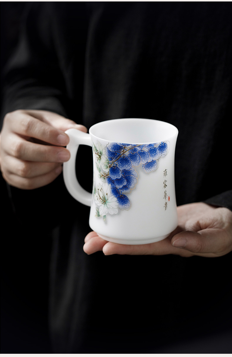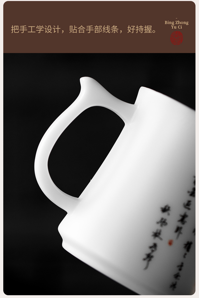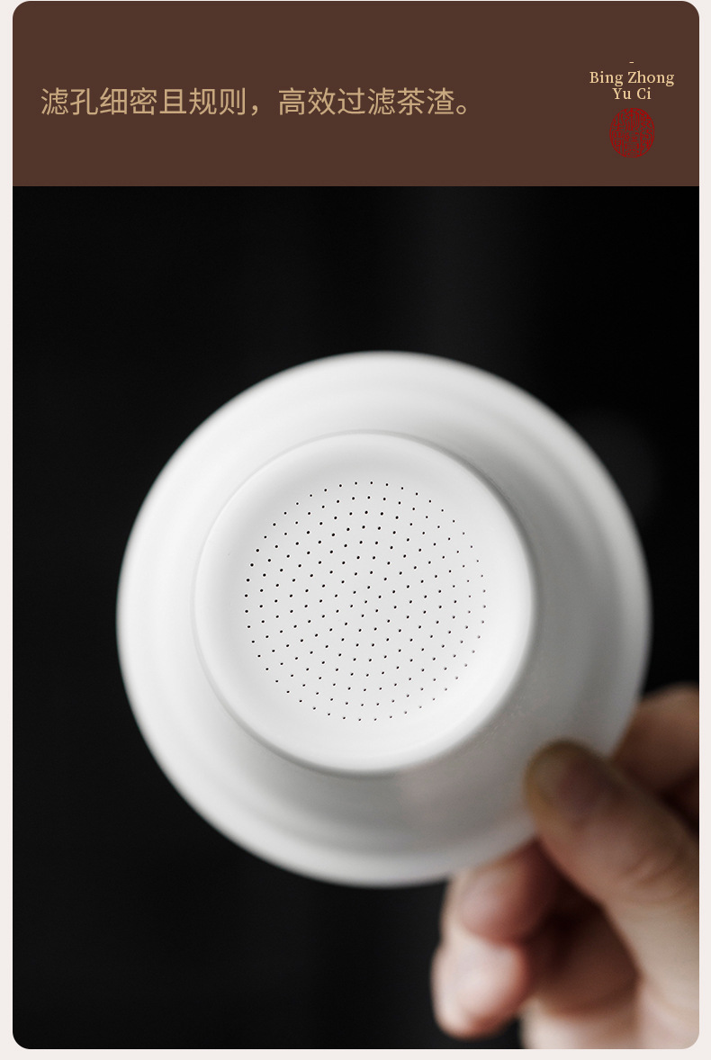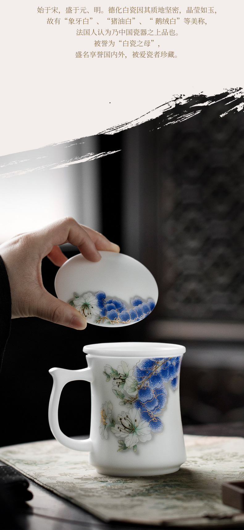 얼음 옥 도자기 사무실 컵 Dehua 흰색 도자기 차 분리 거품 컵 뚜껑 필터 비즈니스 선물 로고스토어 가기