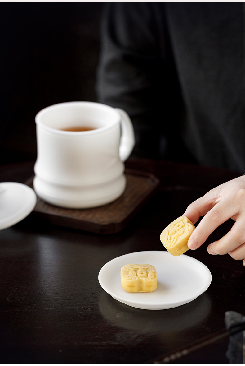 얼음 옥 도자기 사무실 컵 Dehua 흰색 도자기 차 분리 거품 컵 뚜껑 필터 비즈니스 선물 로고