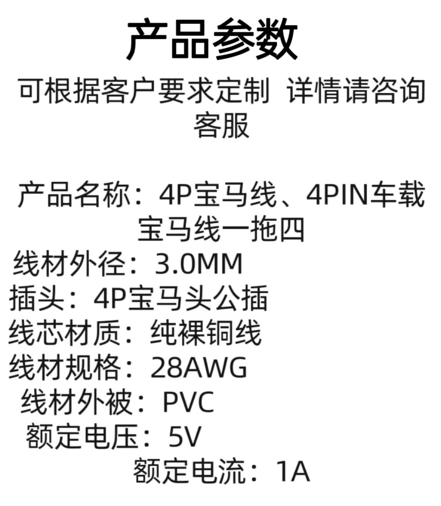 HD 후방 카메라 디지털 오디오 케이블 BMW 4코어 케이블 4P 1-4 케이블 제조업체 재고 있음스토어 가기