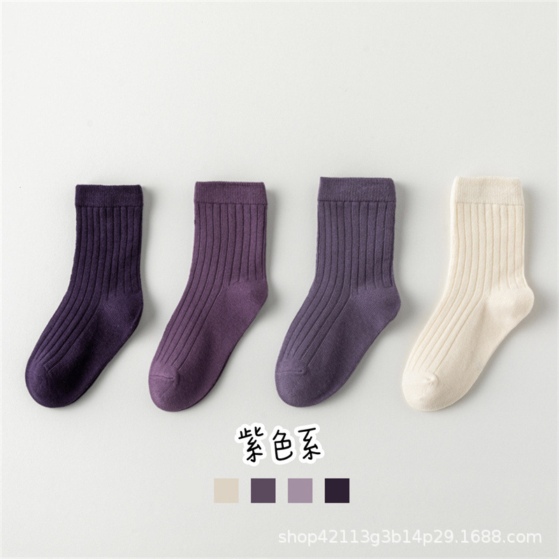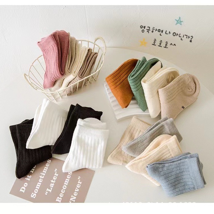 어린이 양말 봄과 가을 면화 소년 및 소녀 양말 한국식 단색 아기 중간 종아리 양말 가을 중형 및 대형 어린이 패션