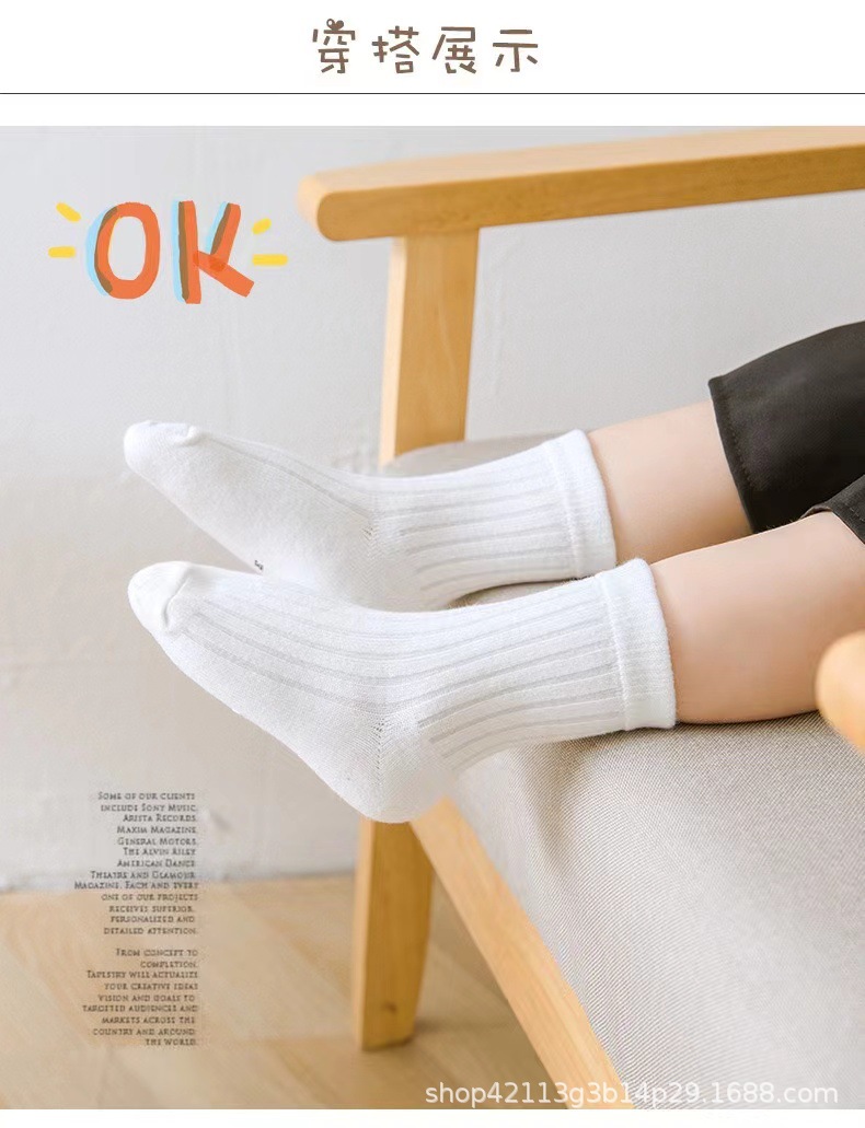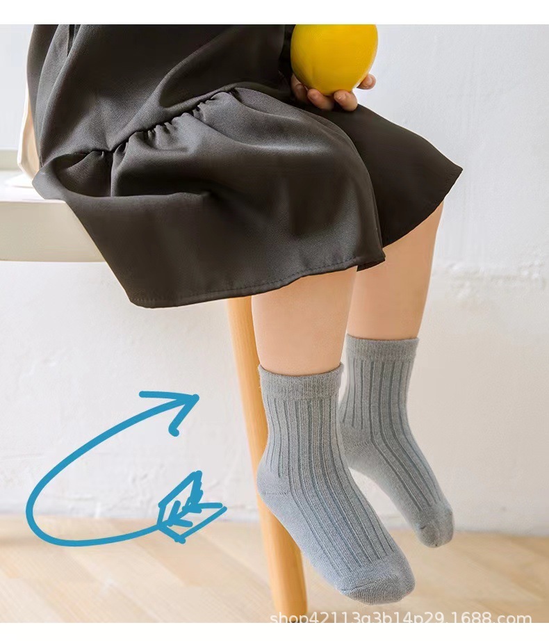 어린이 양말 봄과 가을 면화 소년 및 소녀 양말 한국식 단색 아기 중간 종아리 양말 가을 중형 및 대형 어린이 패션스토어 가기
