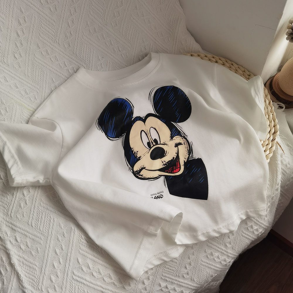 2026년 신상 아동복 면 여름 신상품 만화 캐릭터 아동 반팔 티셔츠 남아 여아 라운드넥 베이비 유아 상의 티셔츠