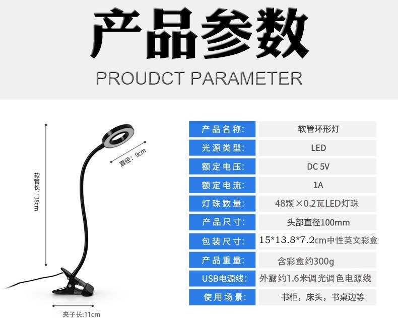Led 학습 클립 책상 램프 눈 보호 독서 작품 라이브 채우기 빛 아름다움 매니큐어 아름다움 셀카 USB 단일 조명