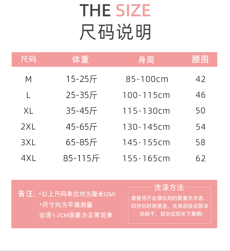 • 4XL 크기 무게 42.50 kg-57.50 kg 높이 155-165cm