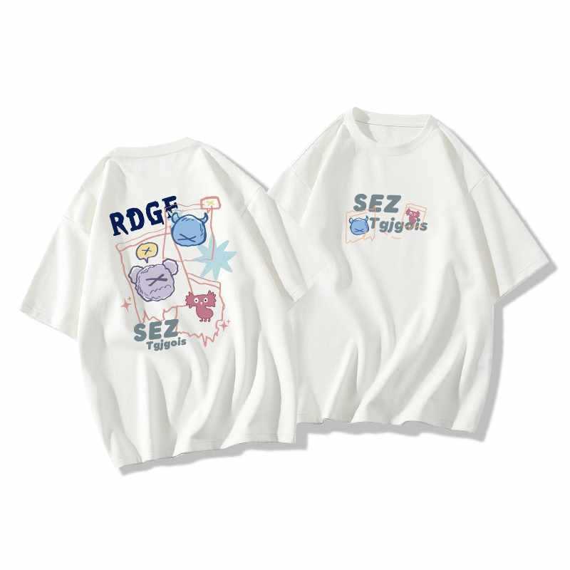 헤비 코튼 루즈 반팔 오프 숄더 티셔츠 여성 반팔 2025 여름 신작 대형 버전 오버 사이즈 탑 트렌디
