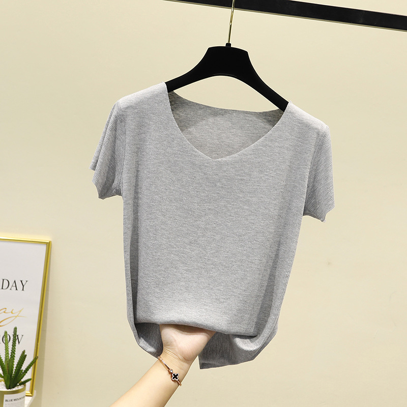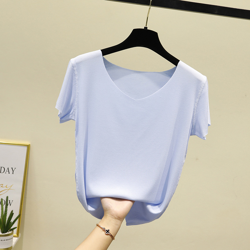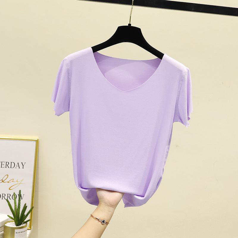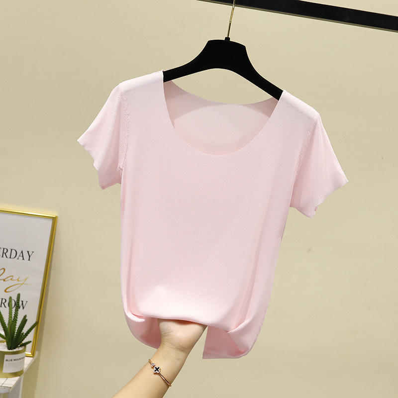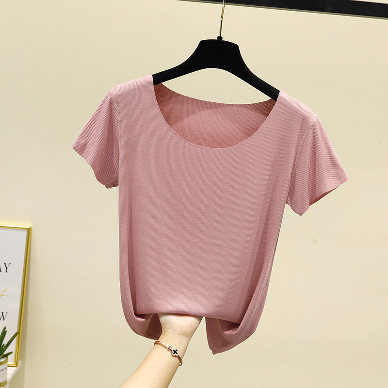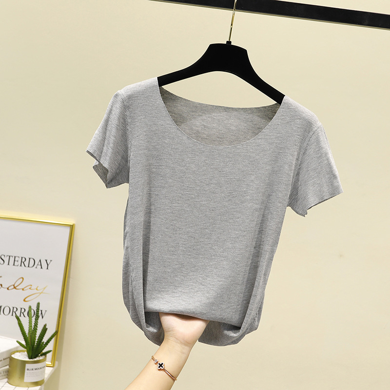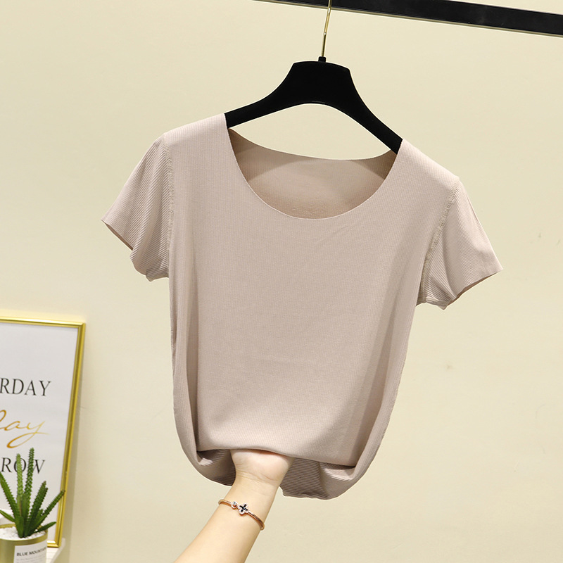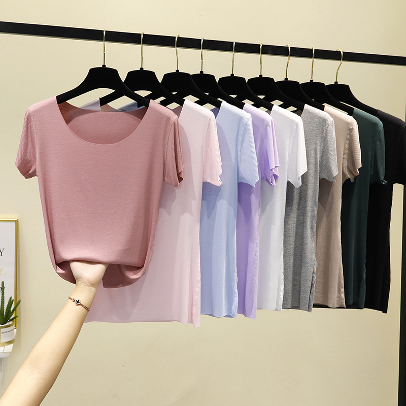 모달 반팔 티셔츠 여성용 여름 원활한 대형 마스크 바닥 셔츠 단색 슬림 핏 얇은 탑스토어 가기