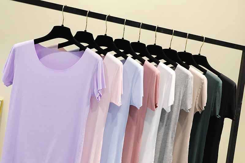 面膜短袖t恤女夏莫代尔无痕大码打底衫纯色修身内搭显瘦薄款上衣