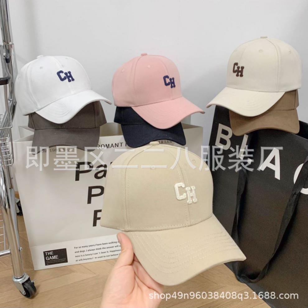 Yiyi 한국식 하드 탑 문자 자수 큰 머리 둘레 곡선 테두리 최고점 모자 남녀 스포츠 레저 태양 모자 야외스토어 가기