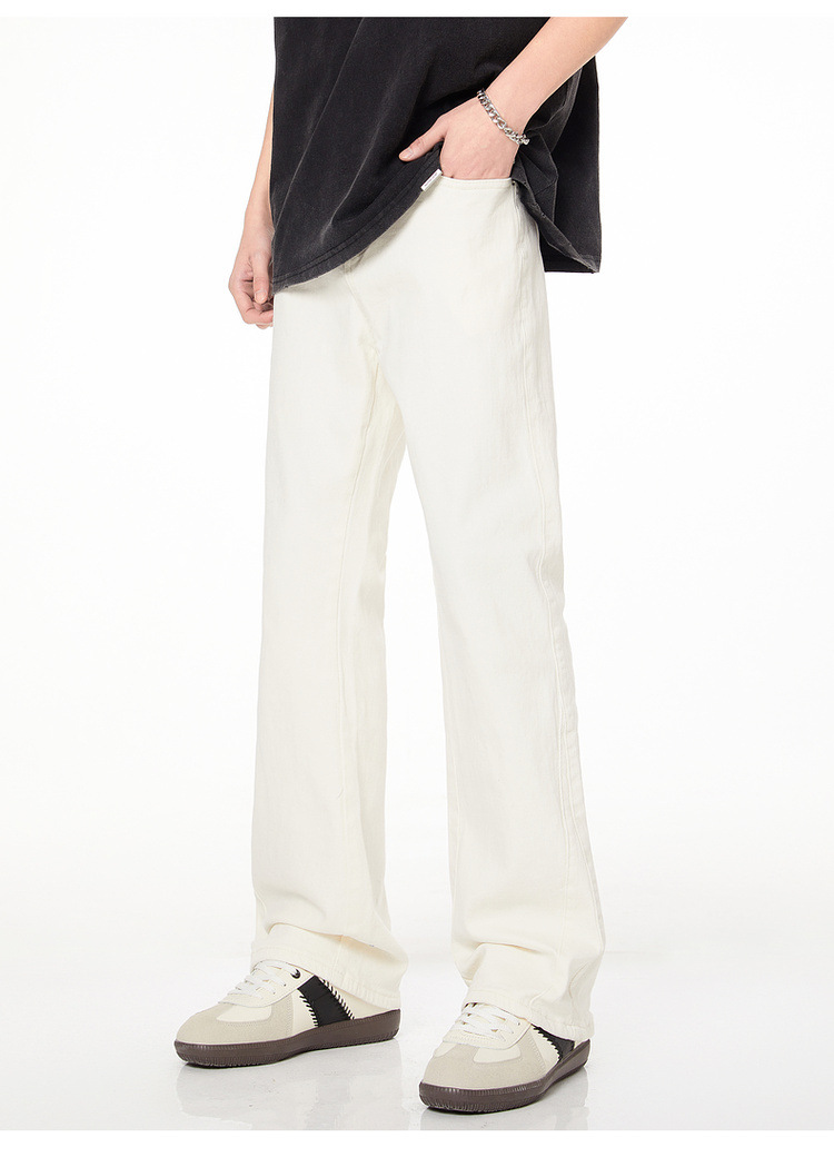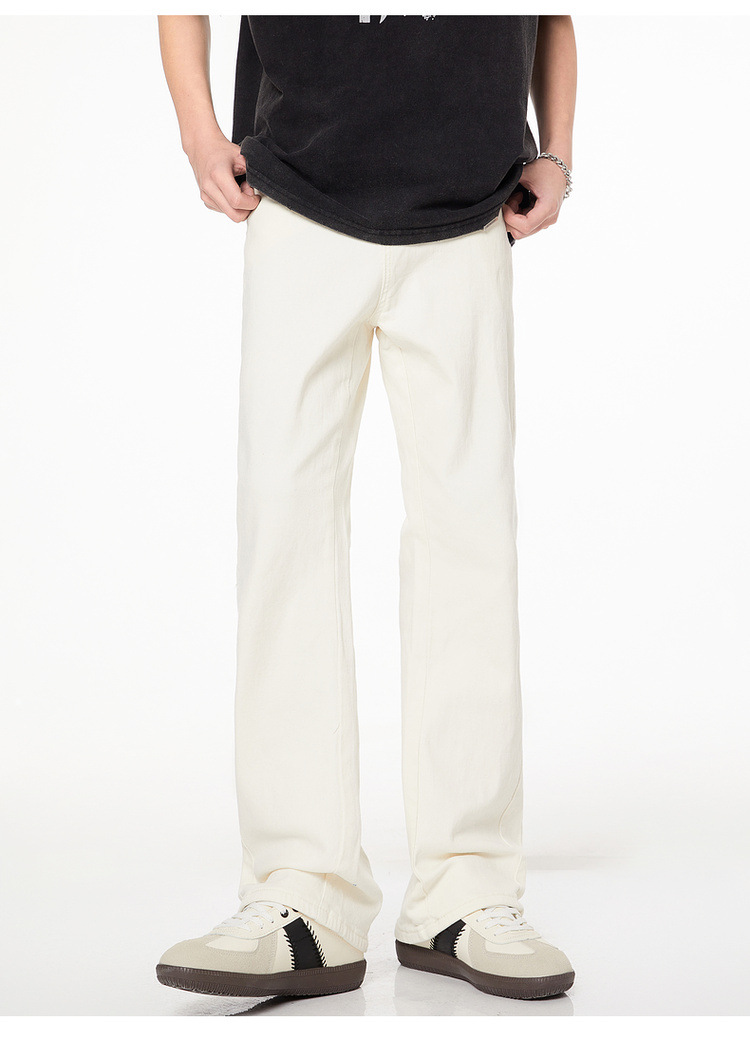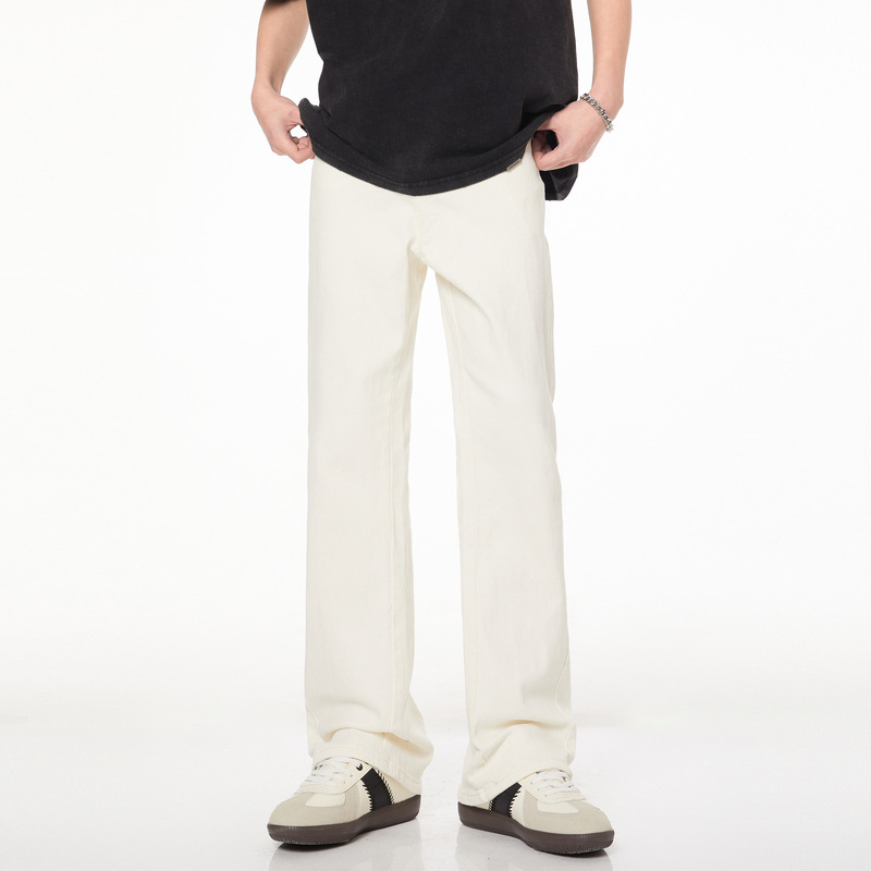 흑백 마이크로 플레어 청바지 남성용 봄 미국 복고풍 패션 브랜드 하이 스트리트 바지 분위기 스타일 캐주얼 바지 남성