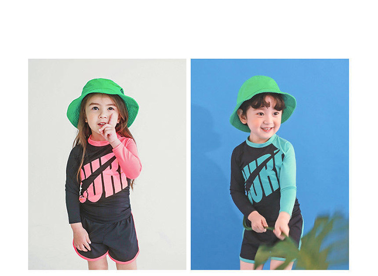 2024 새로운 어린이 수영복 소녀 중형 및 대형 어린이 분할 세트 아기 빠른 건조 긴 소매 태양 보호 소년 다이빙 세트스토어 가기