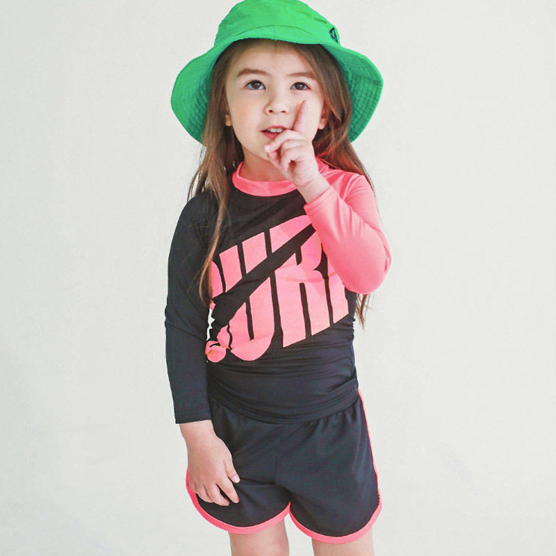 2024 새로운 어린이 수영복 소녀 중형 및 대형 어린이 분할 세트 아기 빠른 건조 긴 소매 태양 보호 소년 다이빙 세트