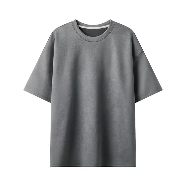 크로스 보더 스웨이드 솔리드 컬러 반팔 티셔츠 남성용 반소매 여름 느슨한 대형 남성 핸즈섬 남성 동일 스타일스토어 가기