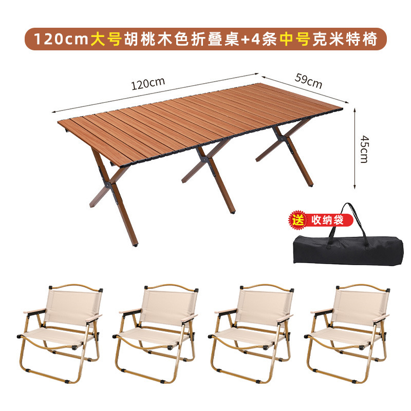 • 대형 호두 계란말이 테이블 + 대형 카키 커밋 의자 4개