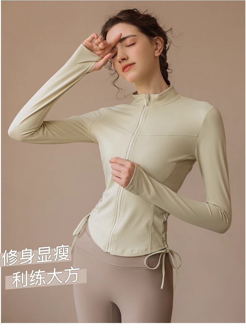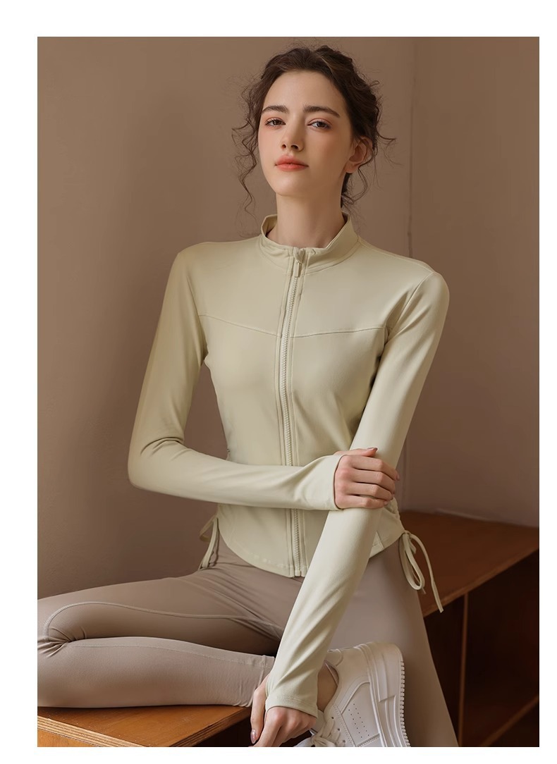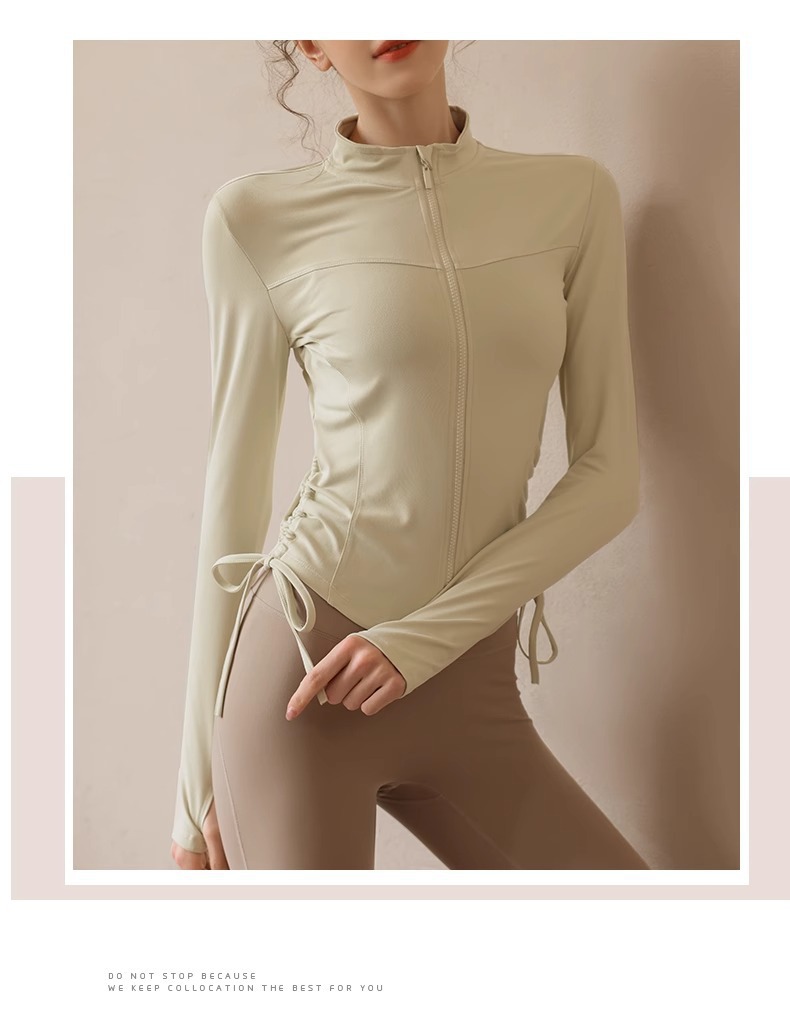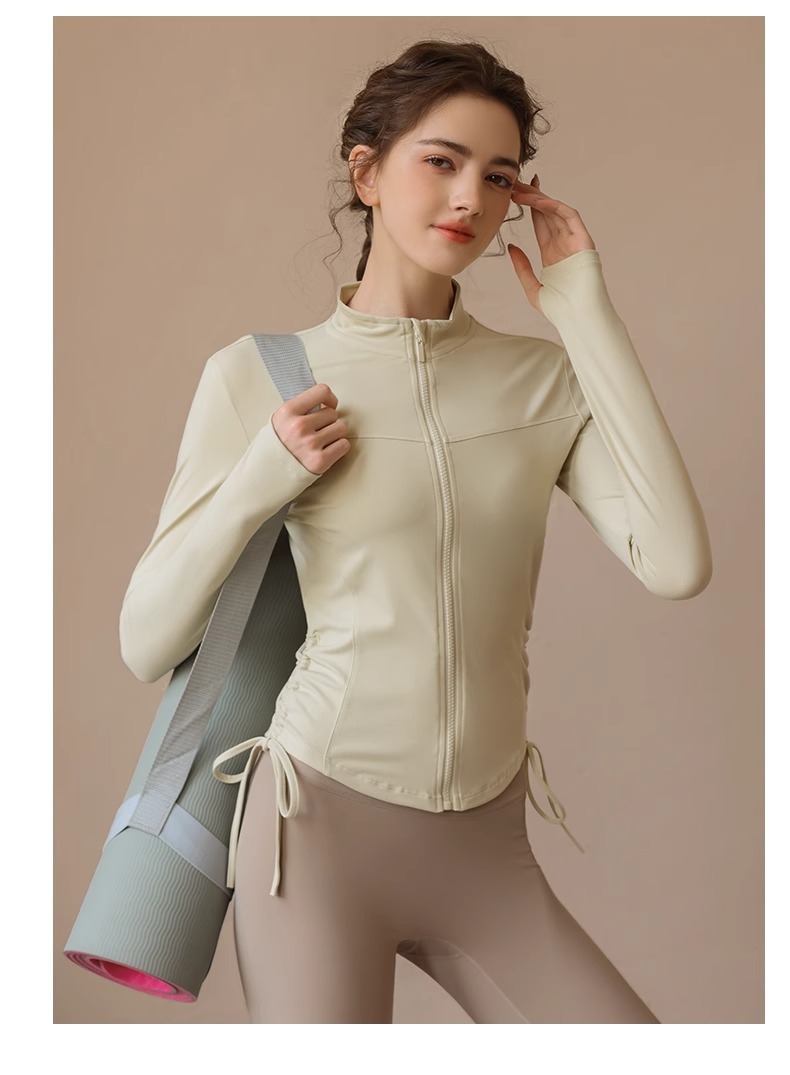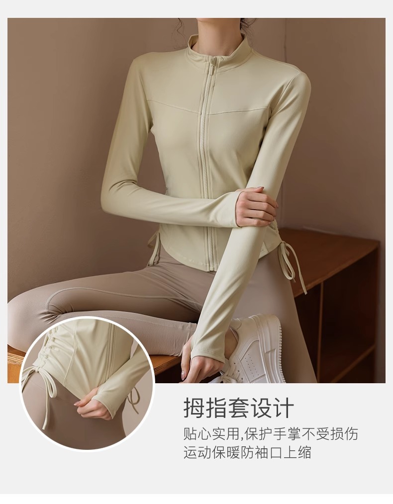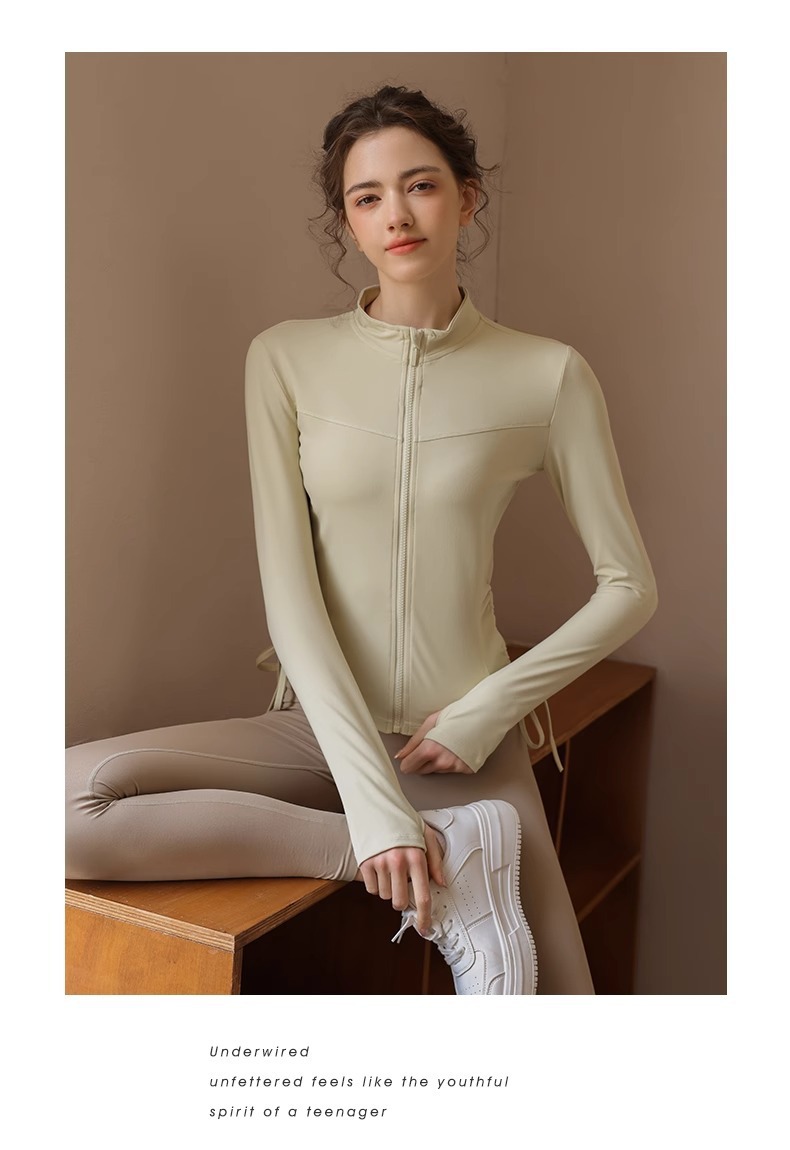 봄 가을 지퍼 조임끈 피트니스 상의 스탠드 칼라 슬림핏 요가복 긴팔 야외 러닝 스포츠웨어