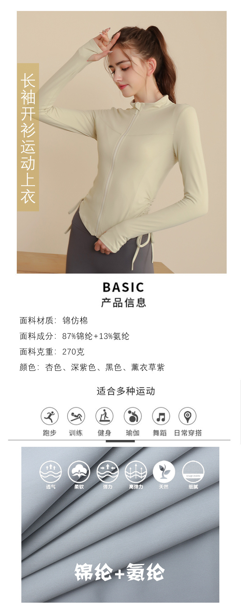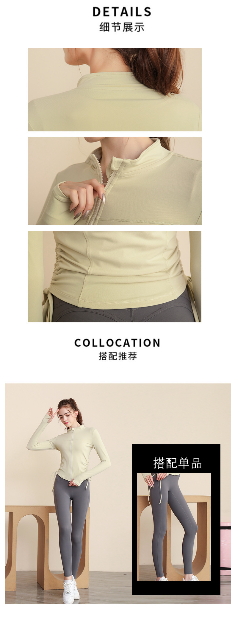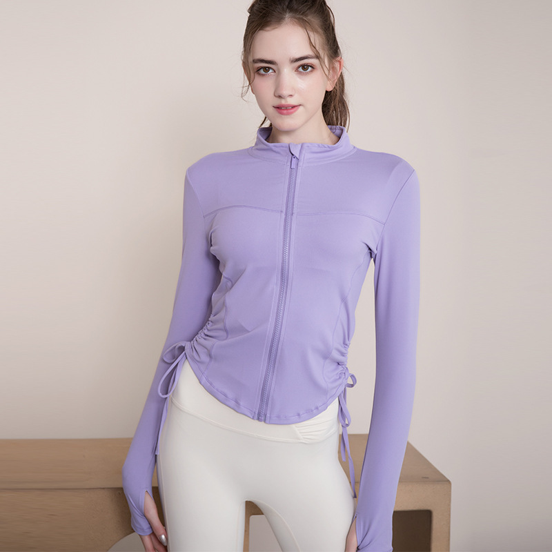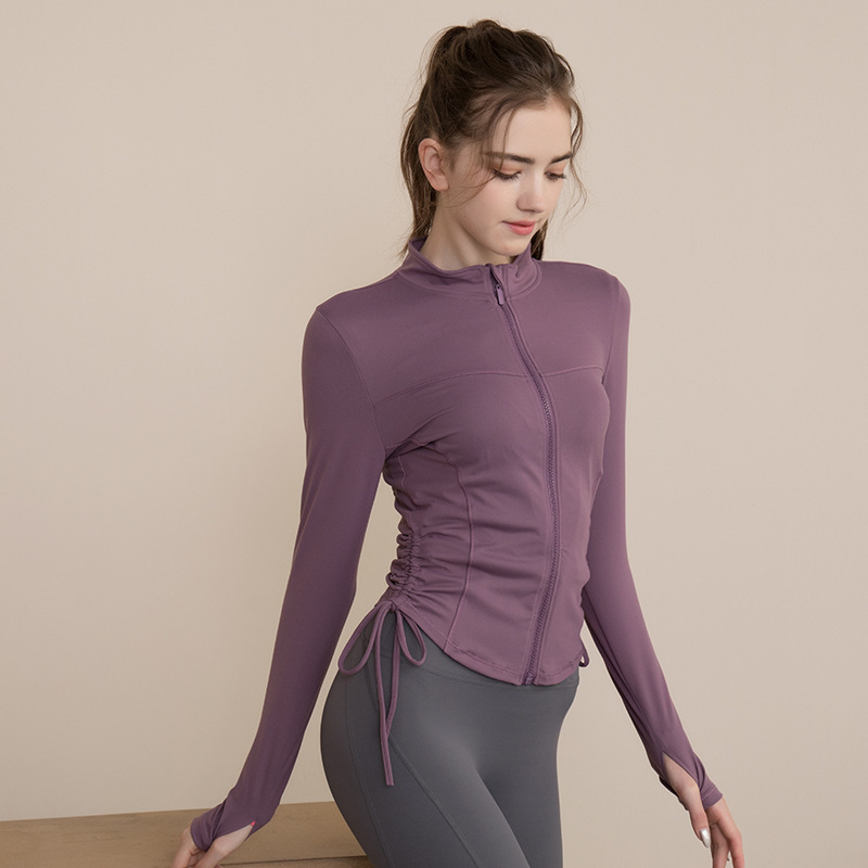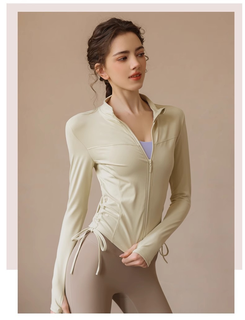 봄 가을 지퍼 조임끈 피트니스 상의 스탠드 칼라 슬림핏 요가복 긴팔 야외 러닝 스포츠웨어