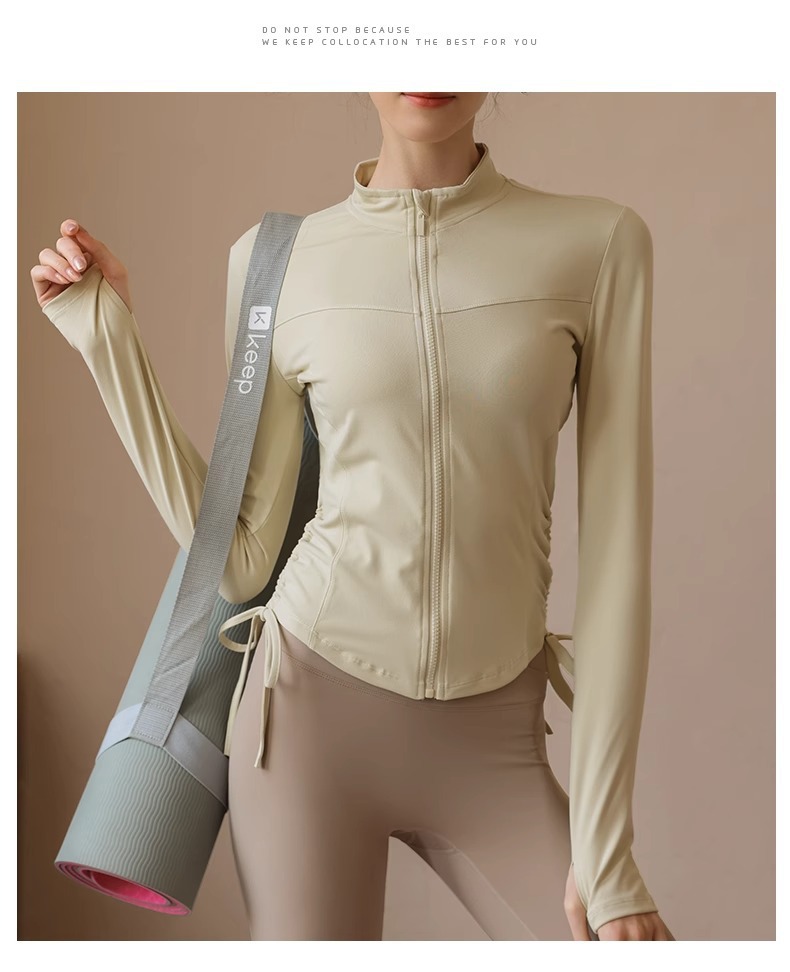 봄 가을 지퍼 조임끈 피트니스 상의 스탠드 칼라 슬림핏 요가복 긴팔 야외 러닝 스포츠웨어스토어 가기