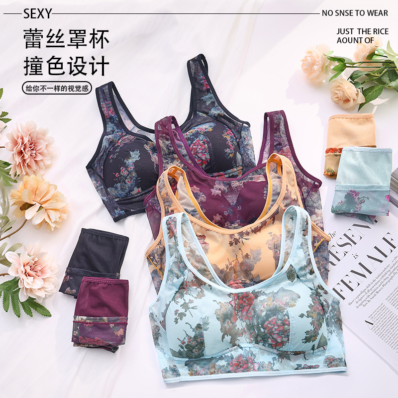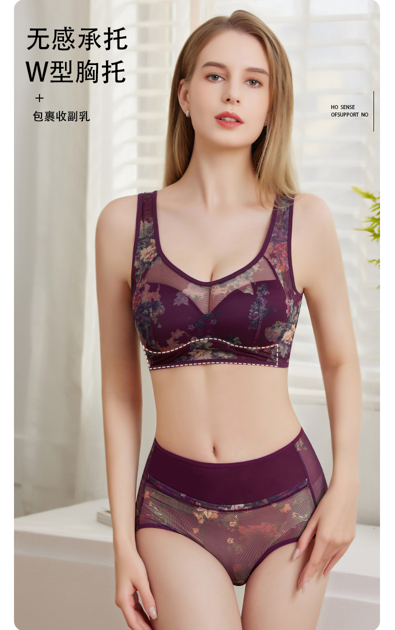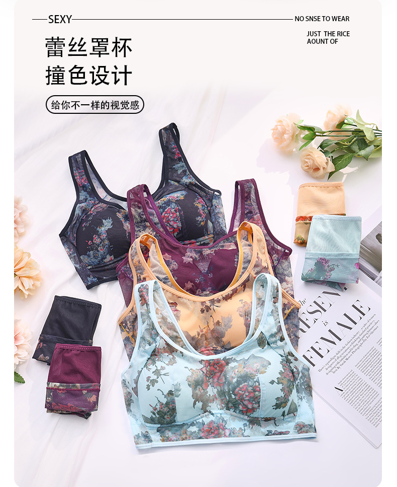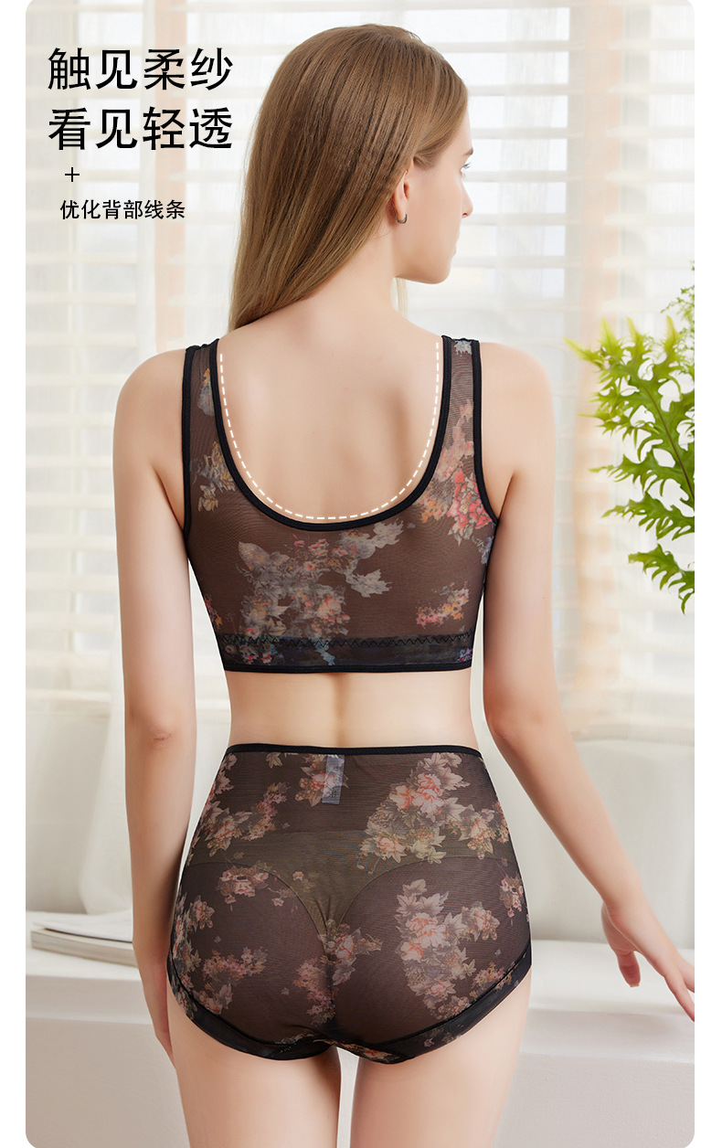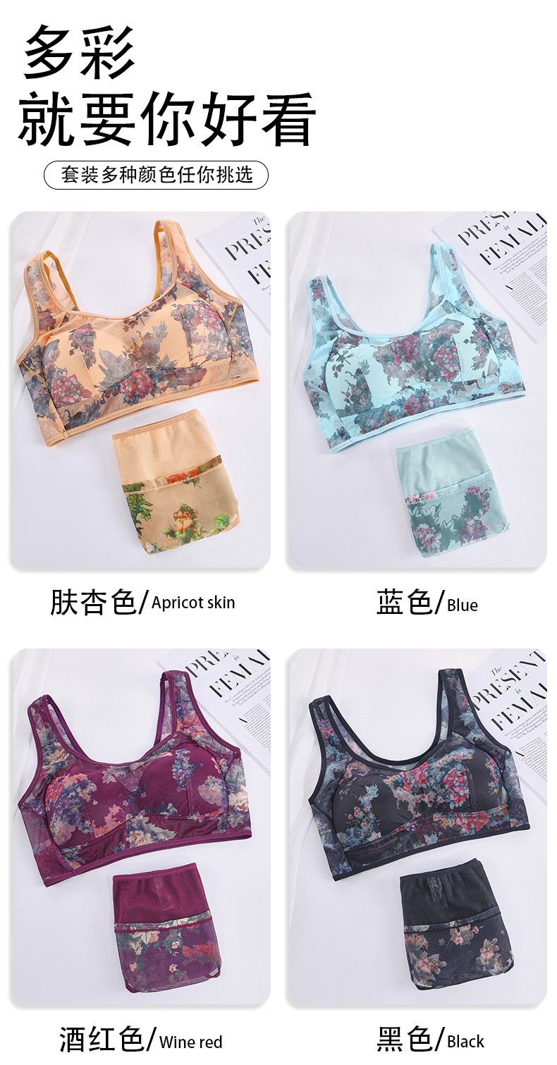 어머니의 속옷 세트 인쇄 된 메쉬 무선 브래지어 여성의 섹시한 중년 및 노인 스포츠 플러스 사이즈 브래지어