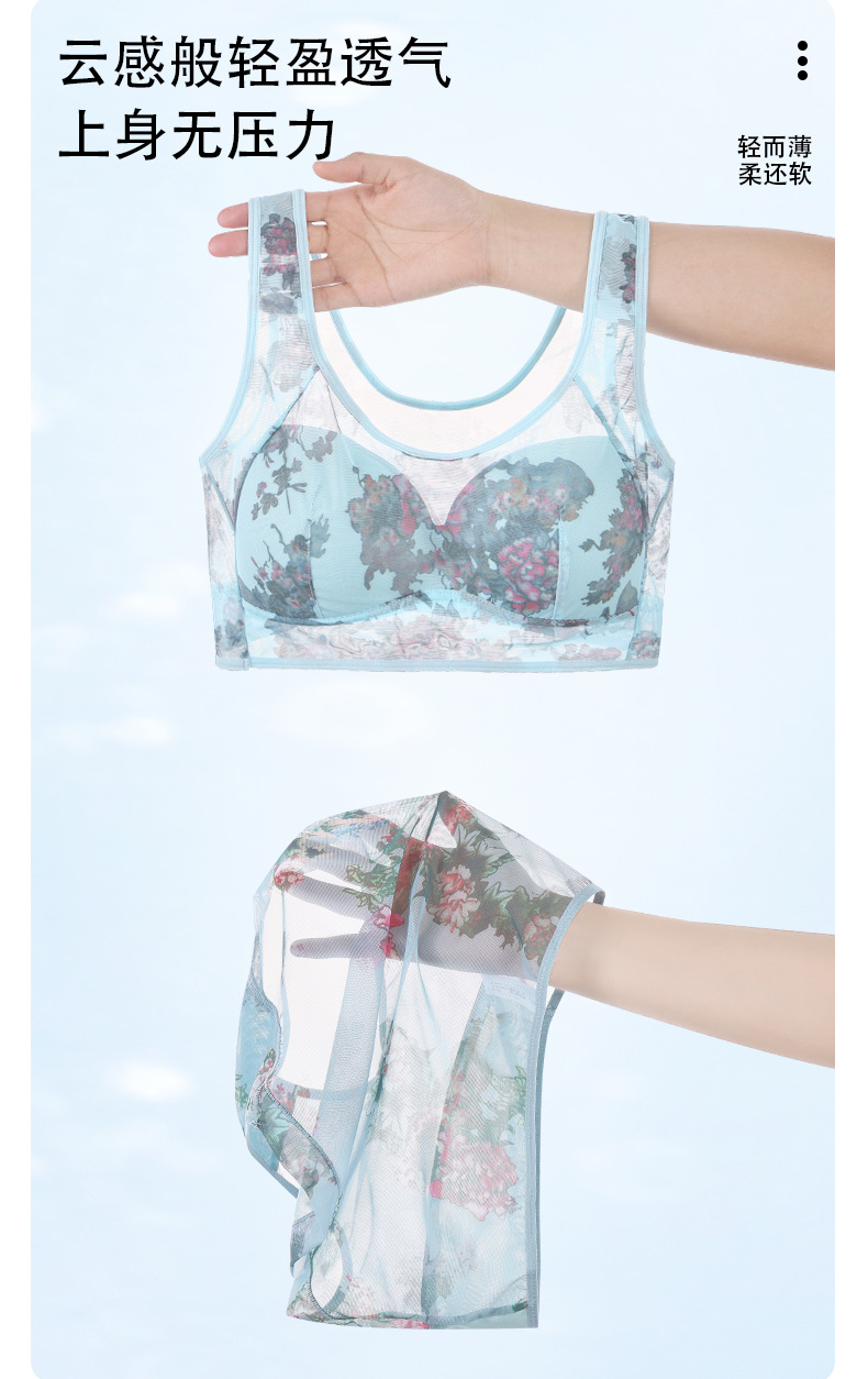어머니의 속옷 세트 인쇄 된 메쉬 무선 브래지어 여성의 섹시한 중년 및 노인 스포츠 플러스 사이즈 브래지어스토어 가기