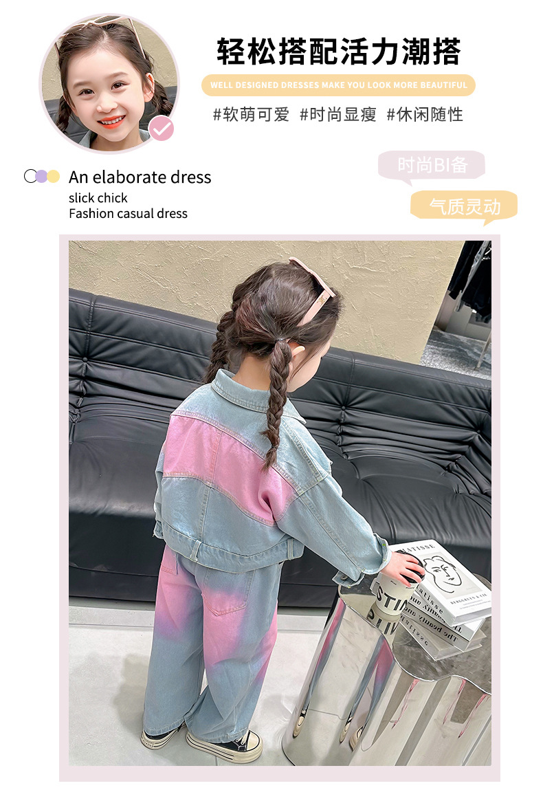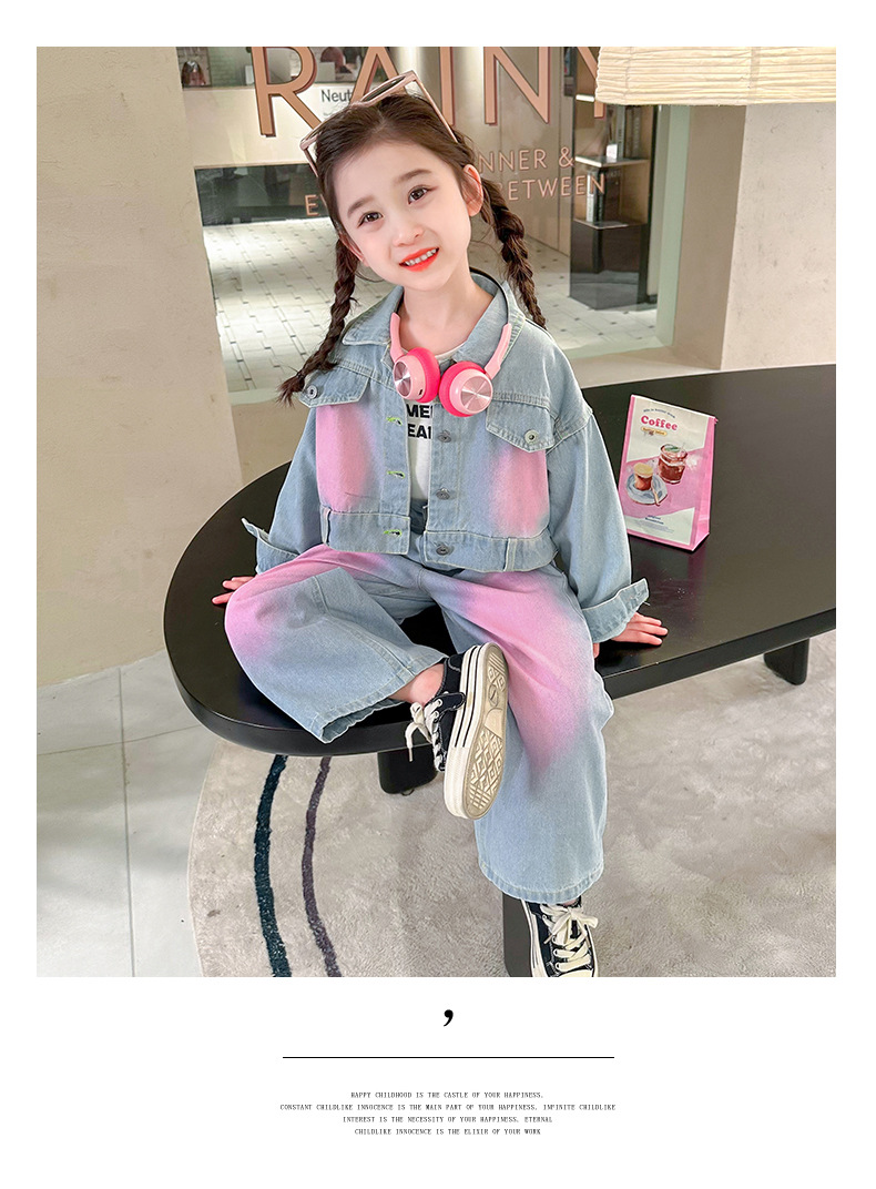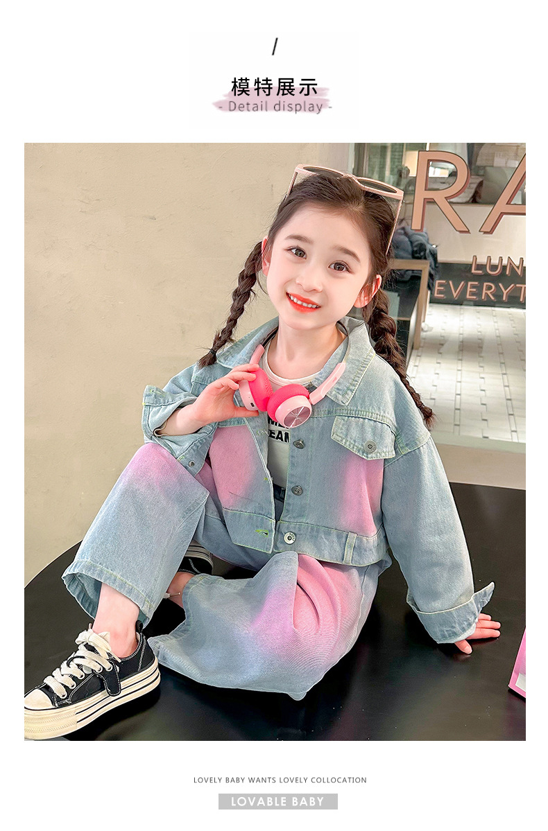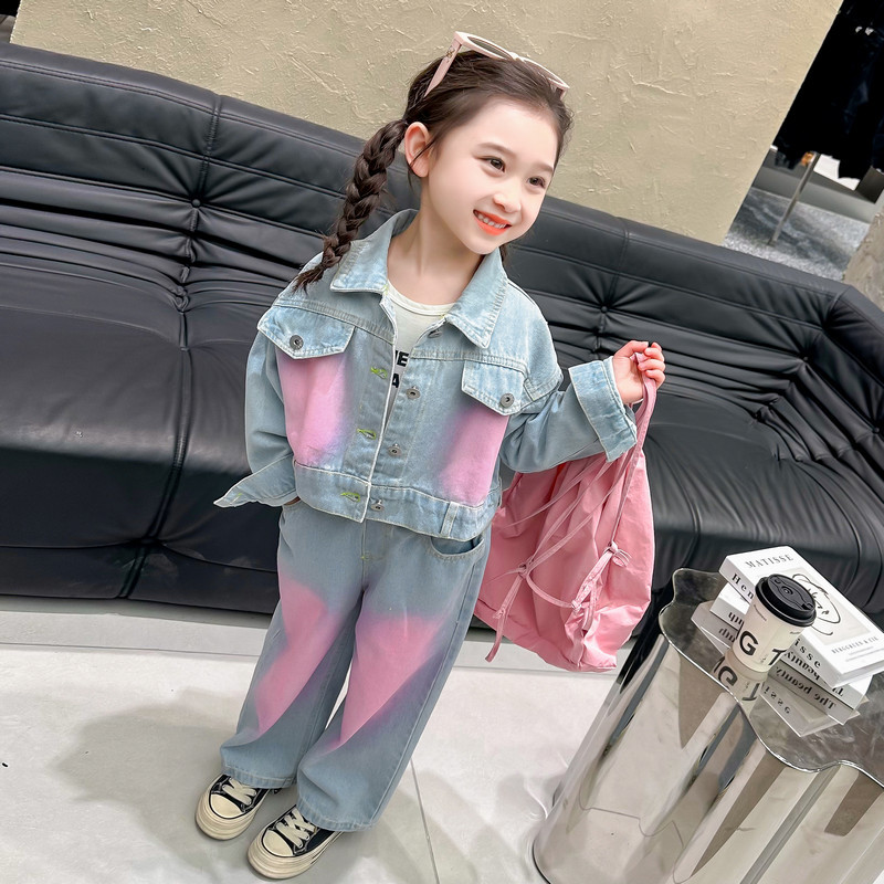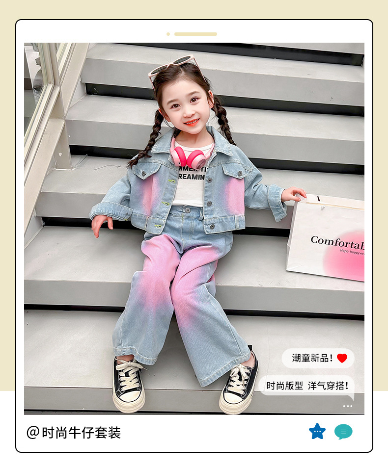 소녀의 봄 옷 세트 2024 새로운 서양식 유행 인터넷 유명인 데님 투피스 세트 유행 어린 소녀 옷 패션스토어 가기