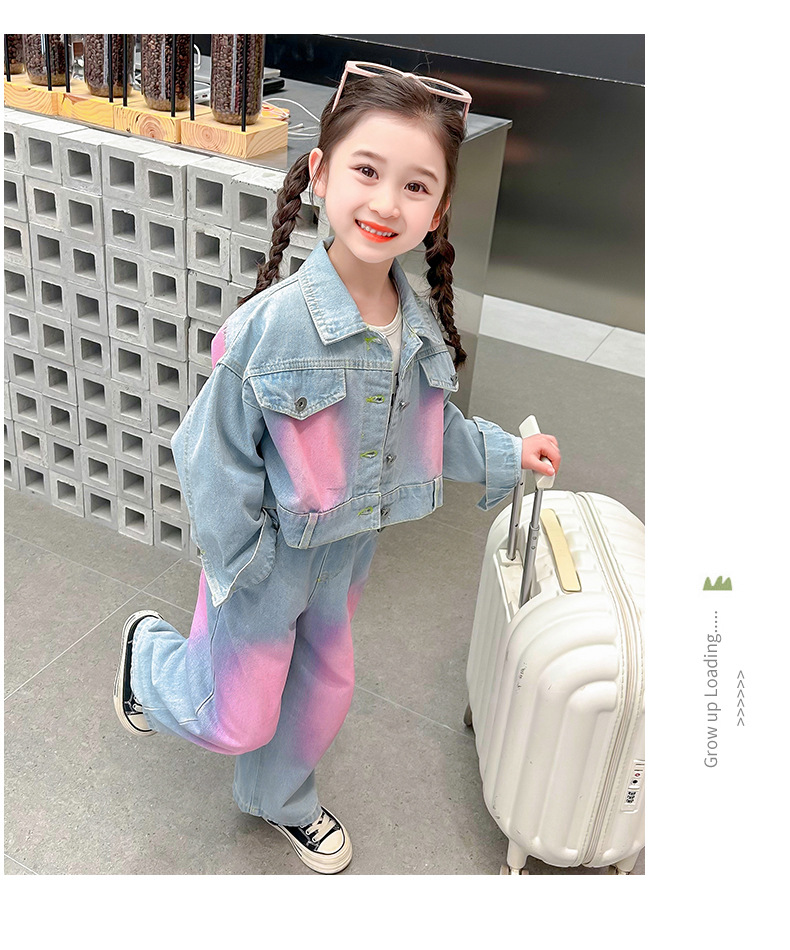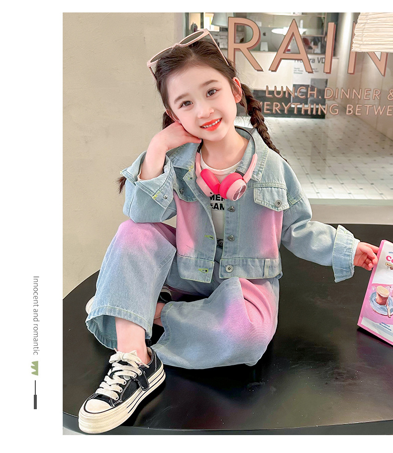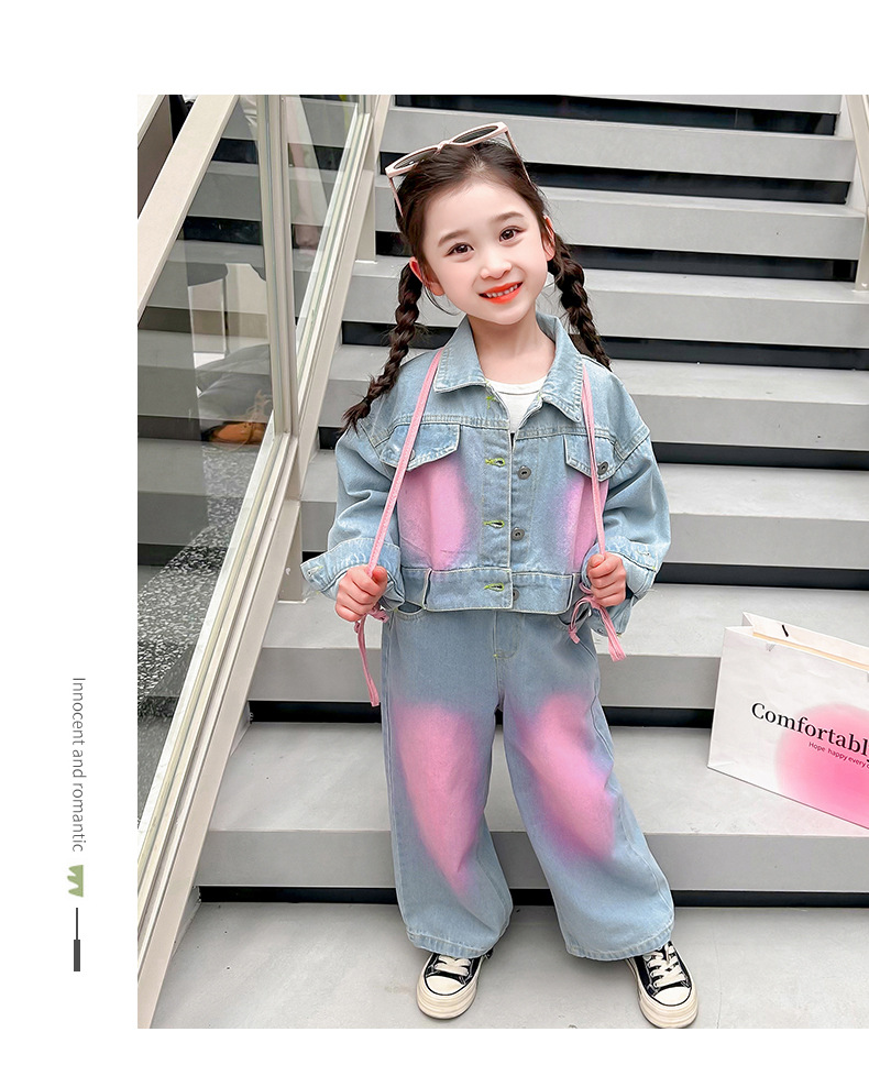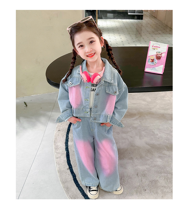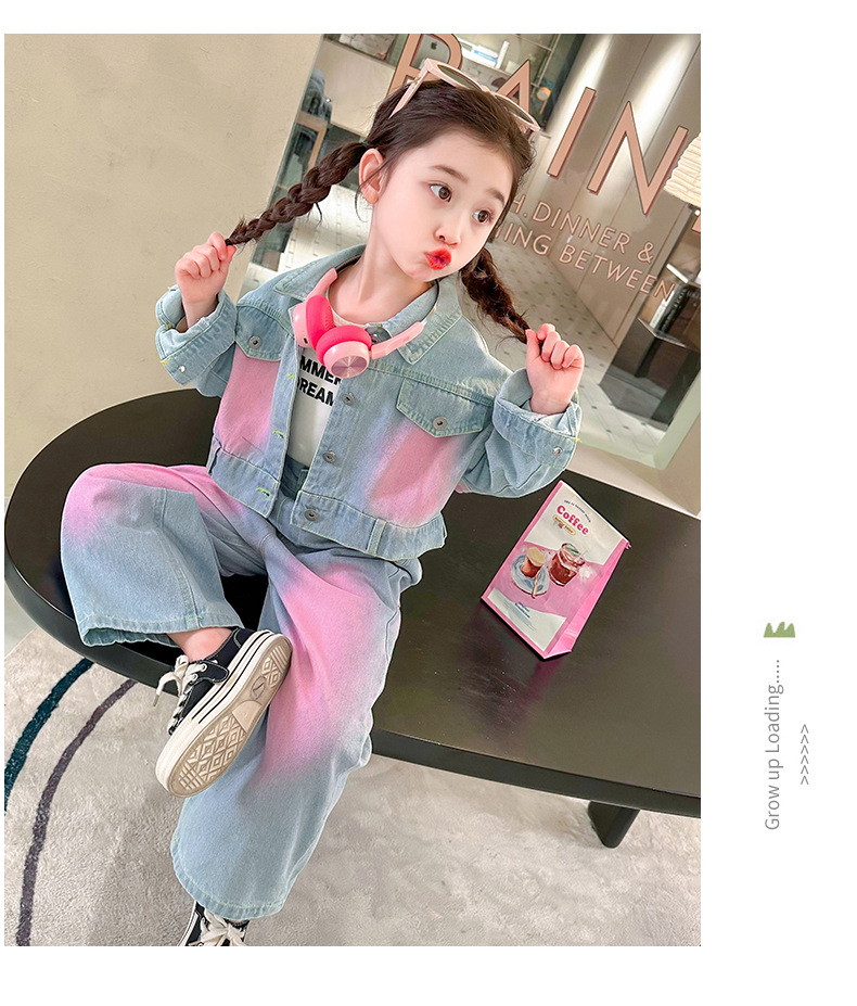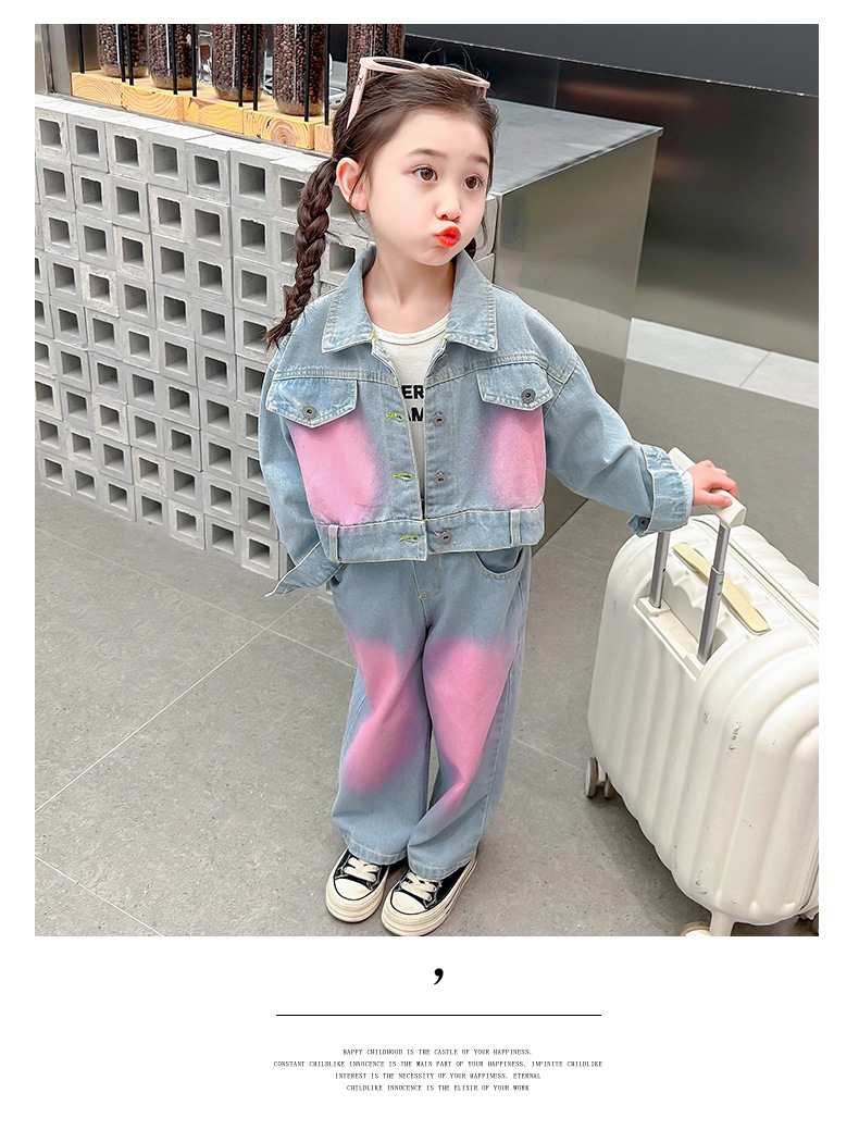 소녀의 봄 옷 세트 2024 새로운 서양식 유행 인터넷 유명인 데님 투피스 세트 유행 어린 소녀 옷 패션스토어 가기