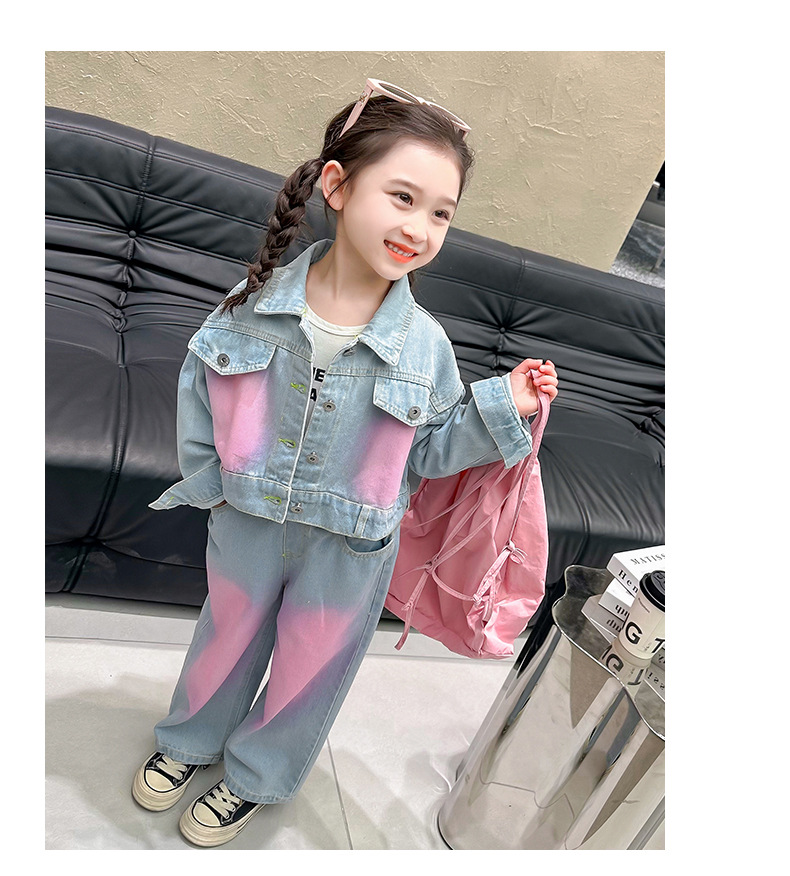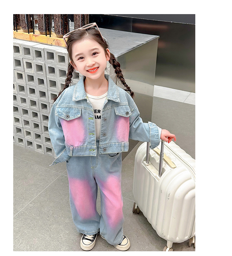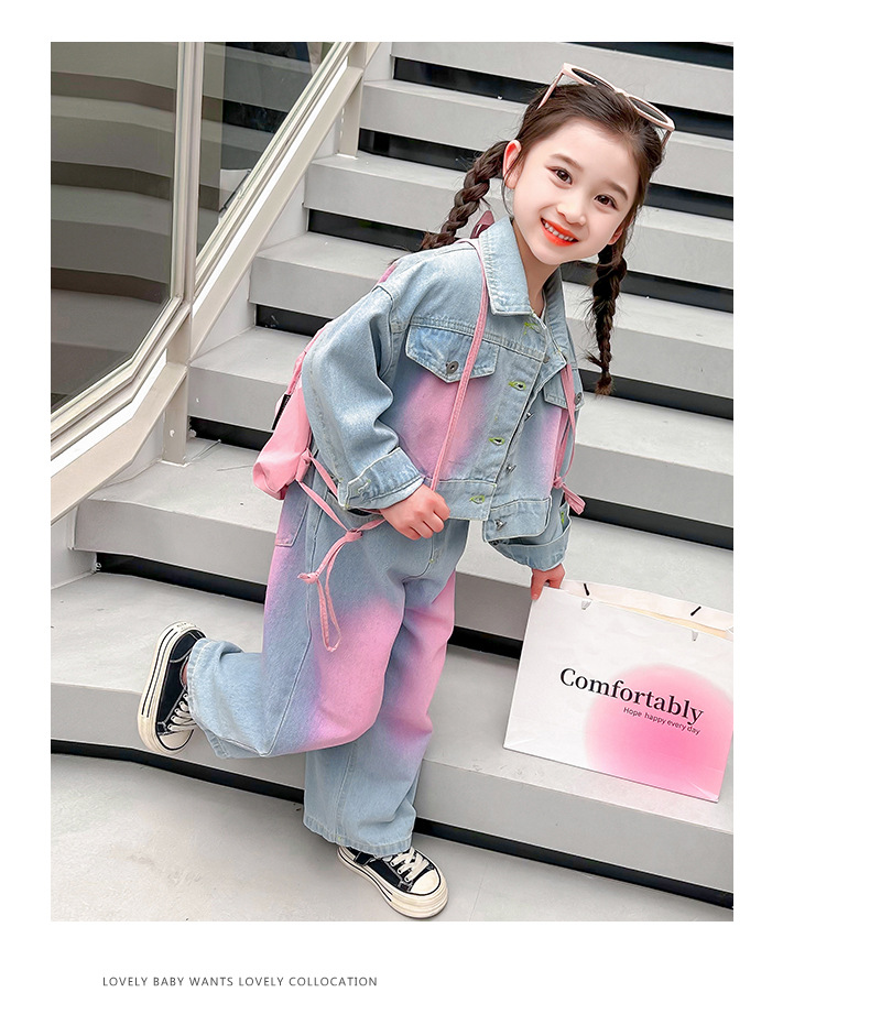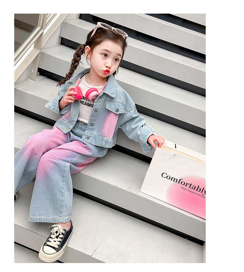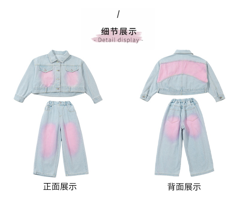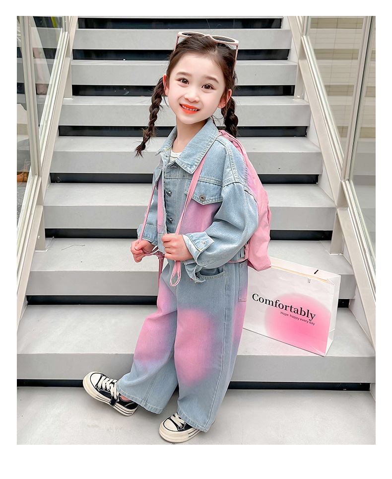 소녀의 봄 옷 세트 2024 새로운 서양식 유행 인터넷 유명인 데님 투피스 세트 유행 어린 소녀 옷 패션스토어 가기