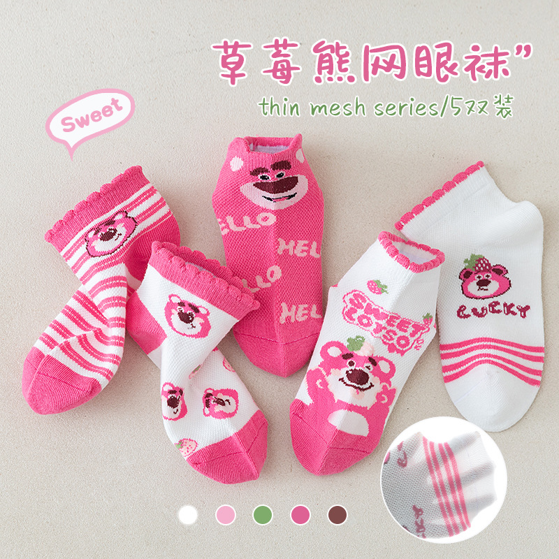 새로운 소녀 양말 여름 얇은 통기성 면 양말 만화 귀여운 곰 조수 양말 메쉬 중대형 어린이 스포츠 중반 송아지