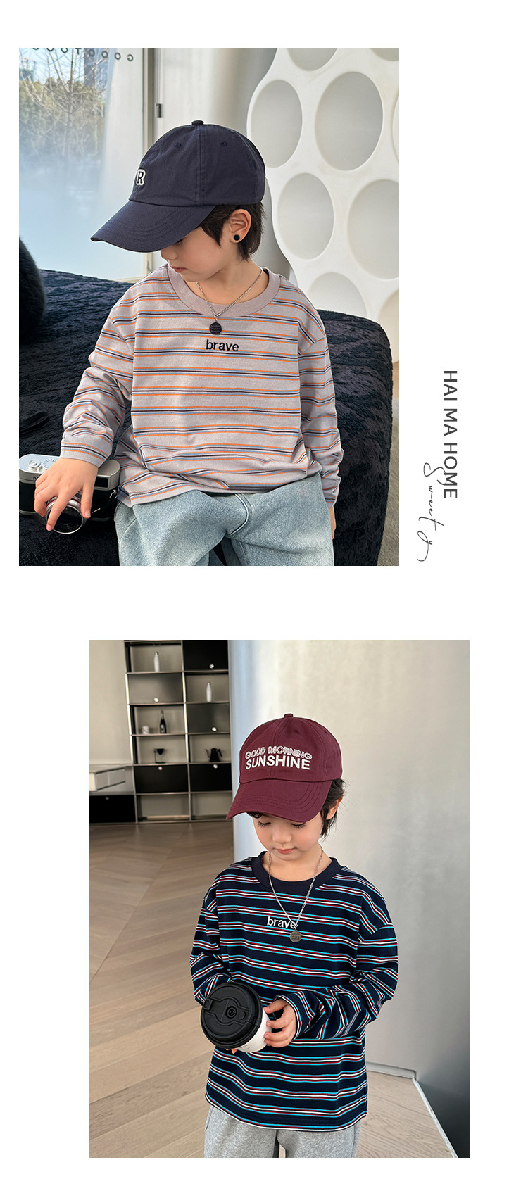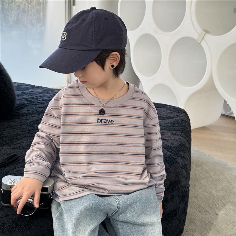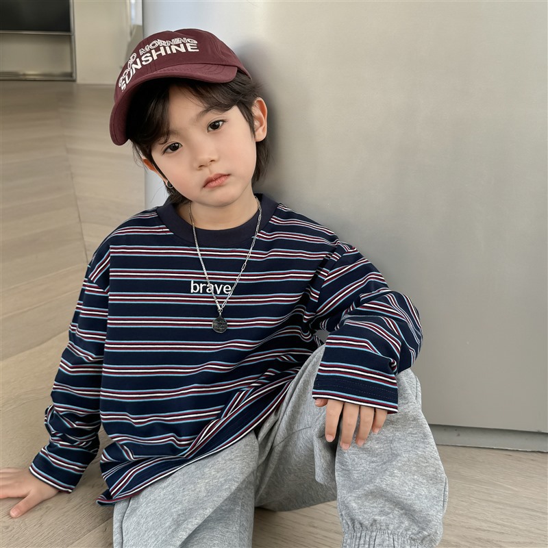 소년 유행 순면 긴팔 티셔츠 2025 봄, 가을 새로운 스타일 어린이 Haima의 한국 스타일 아동복 탑 중대형 어린이스토어 가기