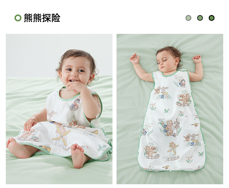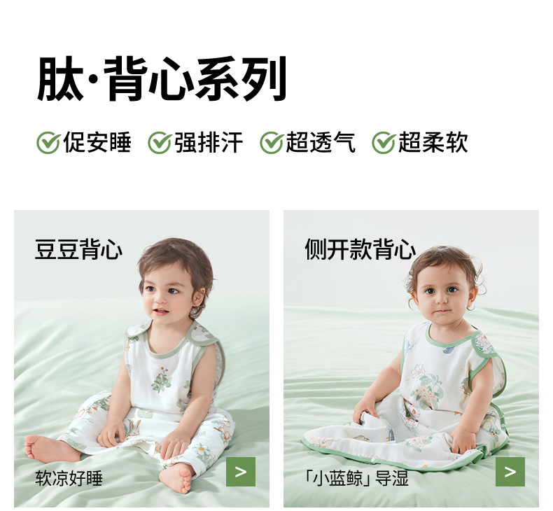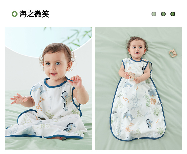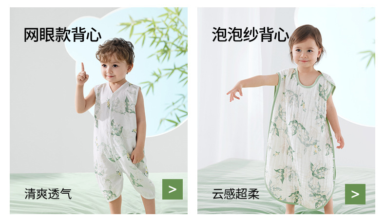 Beptides 아기 거즈 슬리핑 백 여름 얇은 아기 대나무면 조끼 파자마 아이들의 킥 방지 퀼트 유물스토어 가기