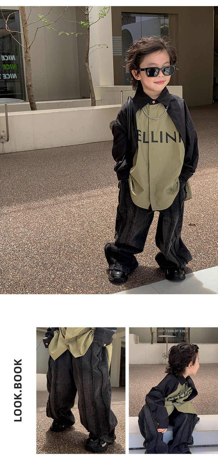 아기 바지 검은 잘 생긴 닳은 느슨한 스트레이트 바지 소년 청바지 봄과 가을스토어 가기
