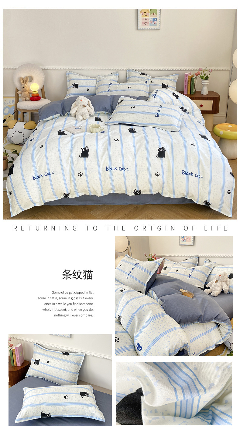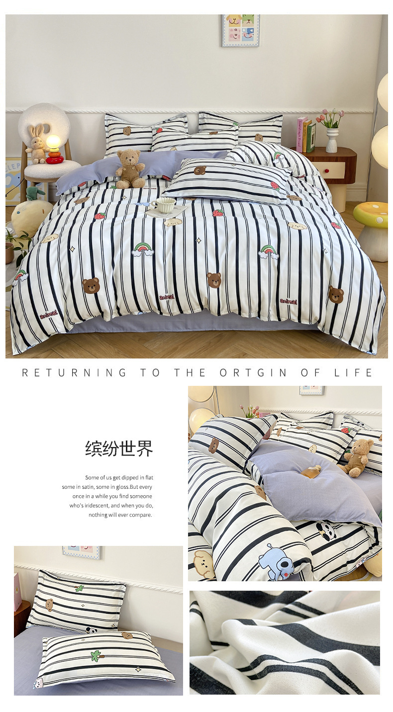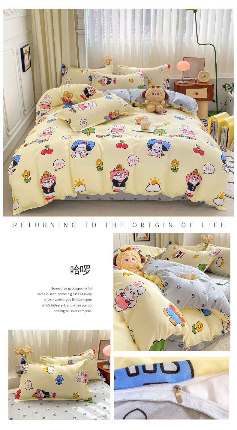 봄과 여름 새로운 피부 친화적 인 면화 알로에 면 인쇄 4 조각 귀여운 만화 학생 기숙사 3 조각 침대 시트 퀼트 커버