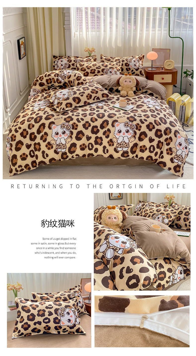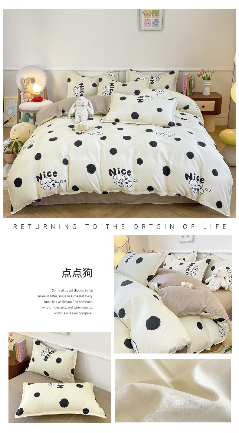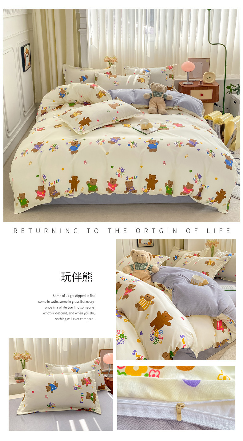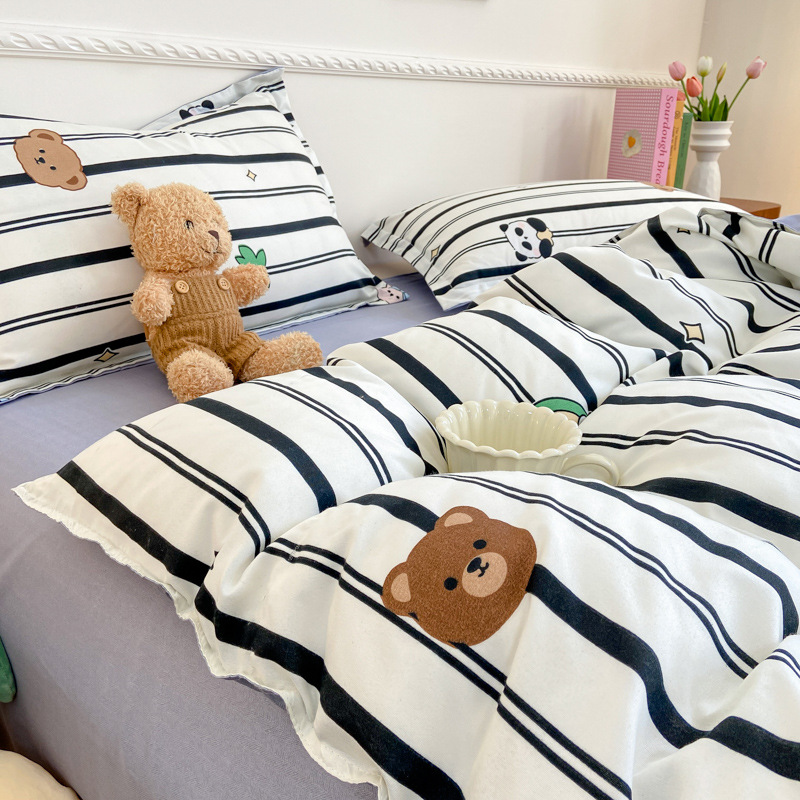 봄과 여름 새로운 피부 친화적 인 면화 알로에 면 인쇄 4 조각 귀여운 만화 학생 기숙사 3 조각 침대 시트 퀼트 커버