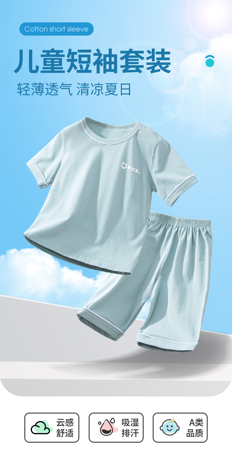 라이크라 어린이 홈 세트 여름 신형 중형 및 대형 어린이 반팔 반바지 세트 소년 소녀 잠옷 여름 옷스토어 가기