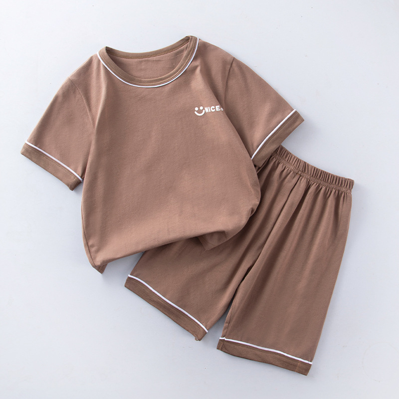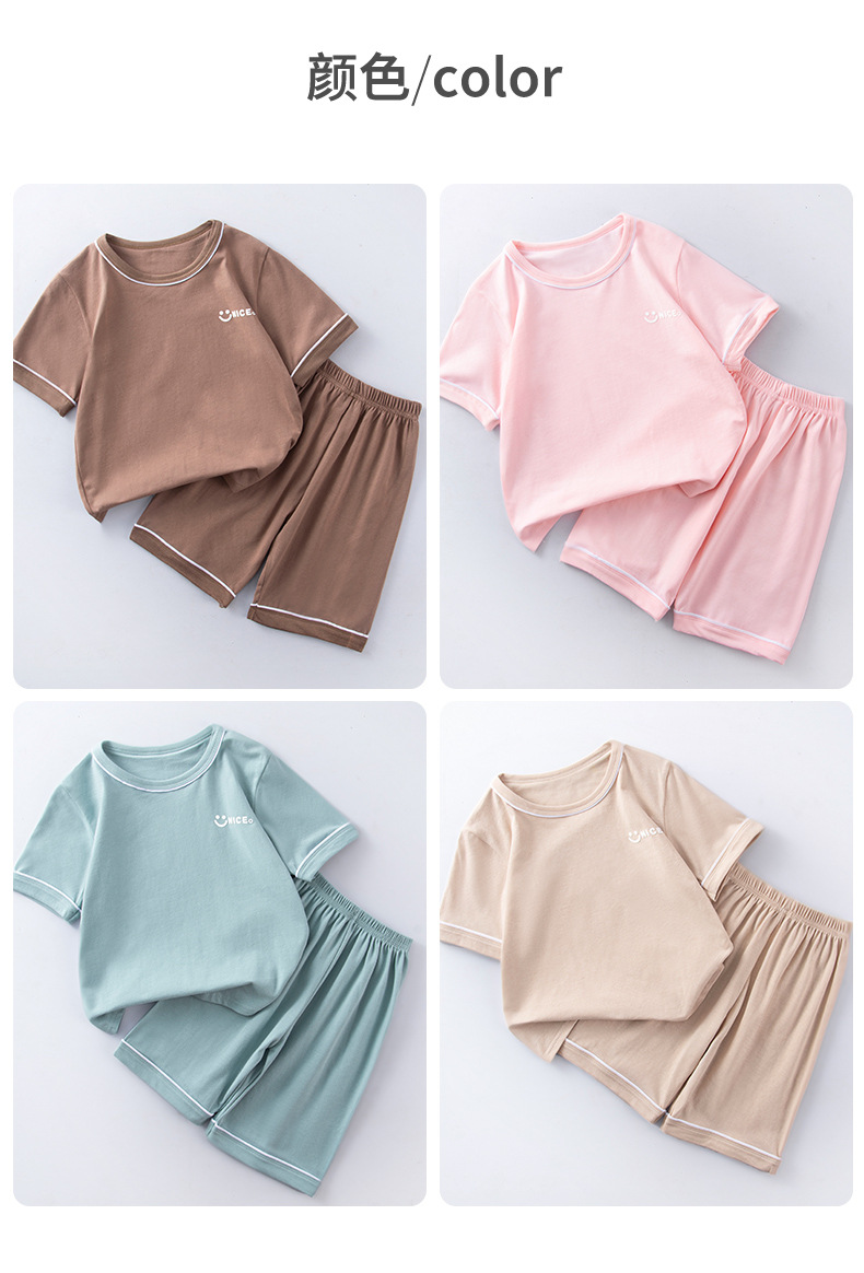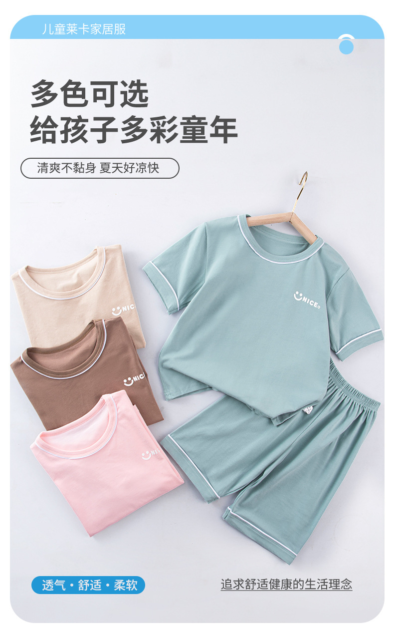 라이크라 어린이 홈 세트 여름 신형 중형 및 대형 어린이 반팔 반바지 세트 소년 소녀 잠옷 여름 옷