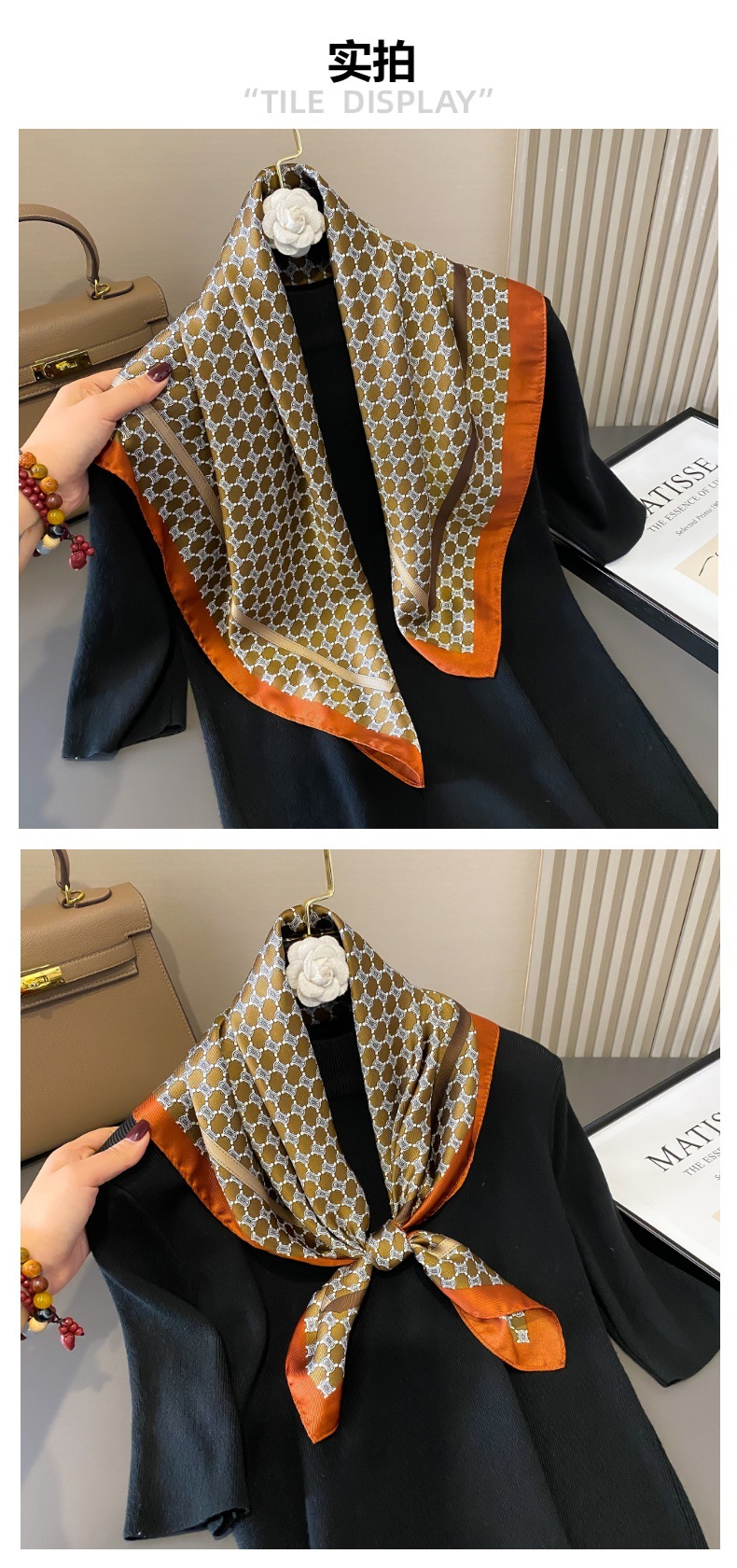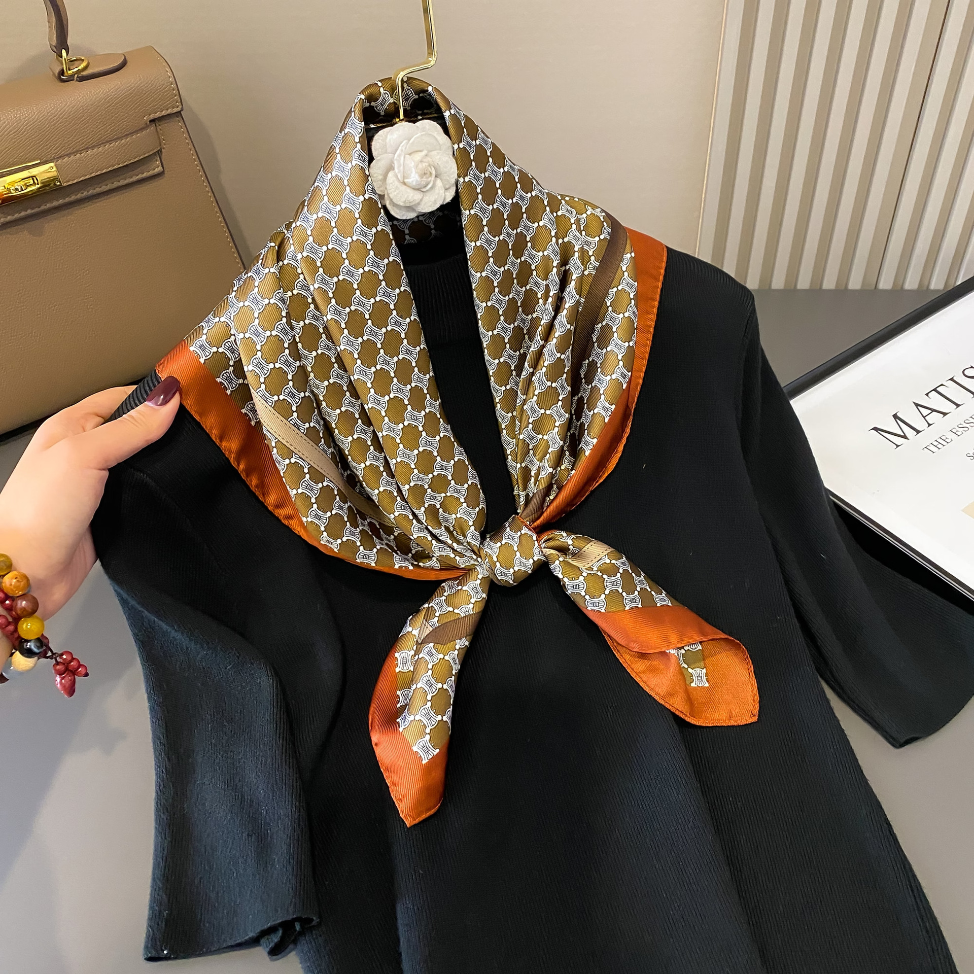봄과 여름 새로운 70cm 인공 실크 패션 작은 사각형 스카프 여성의 클래식 복고풍 프린트 스카프 통근 기질 스카프