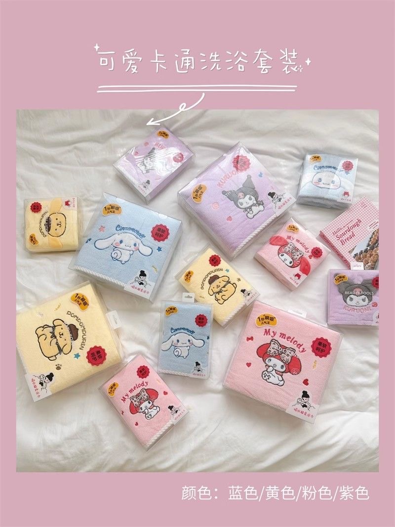 만화 산리오 푸딩 개 수건 수건 수건 얼굴 수건 마른 헤어 캡 부드러운 흡수성 어린이 목욕 수건 목욕 타월